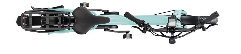 Als er weinig ruimte is, kun je de pedalen inklappen en het stuur – dankzij de Speedlifter – parallel aan het frame draaien om de fiets binnen te zetten.