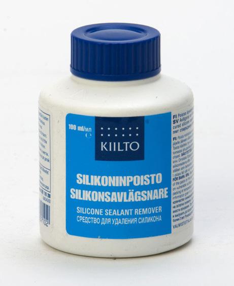 Kiilto silikoninpoisto/ silikonborttahare 100 ml Pehmentää kovettuneen silikoni massan ja helpottaa silikonisauman poistamista. Sopii kaikille silikoni massatyypeille (KI17)