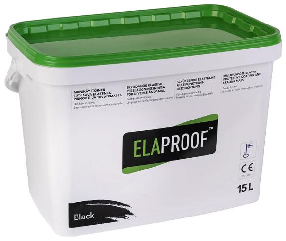Musta/svart. Tuote sopii erinomaisesti vesi- ja kosteuseristykseen sekä tiivistykseen rakennuksissa ja rakenteissa. /Produkten är idealisk för vattentätning, fuktsäkring och tätning i byggnader och konstruktioner. (AL63)