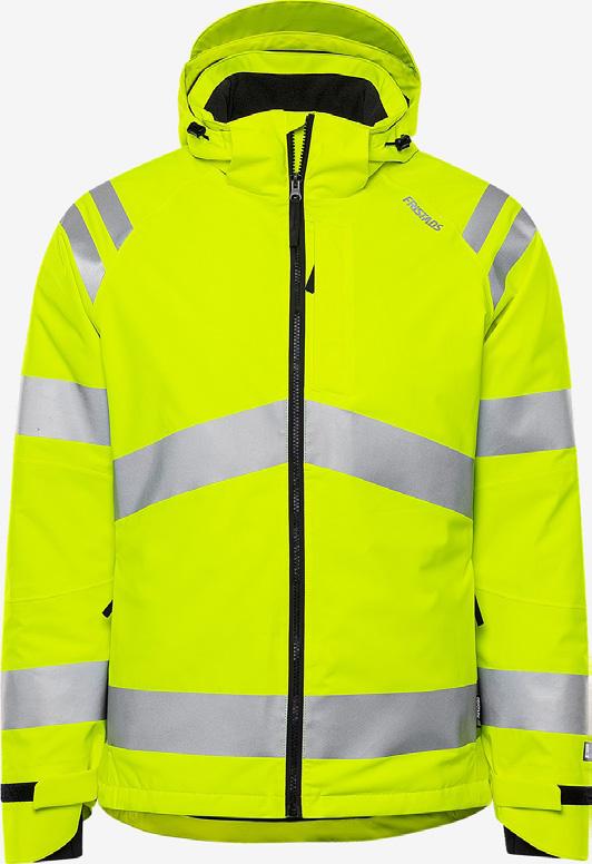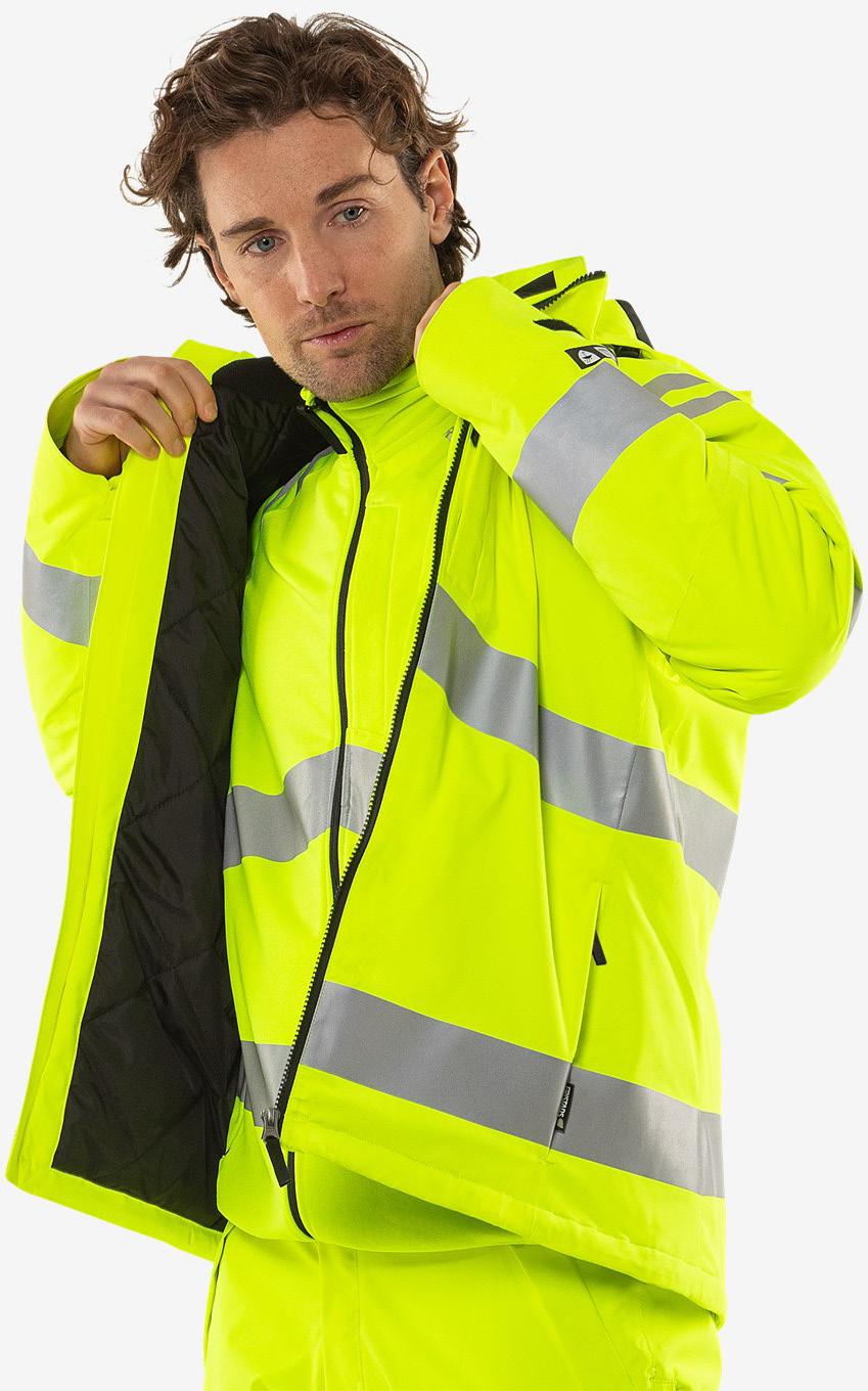 Talvitakki/vinterjacka High Vis Stretch LK3 4682 neonkeltainen Pehmeä ja näkyvä talvitakki joustavasta kierrätetystä materiaalista. Vedenpitävä työtakki teipatuilla saumoilla ja tikkivuorilla, jotka antavat pehmeän käyttömukavuuden ja erinomaisen toimivuuden pitäen olon samalla lämpimänä ja kuivana./ Mjuk high-vis jacka av återvunnet material.