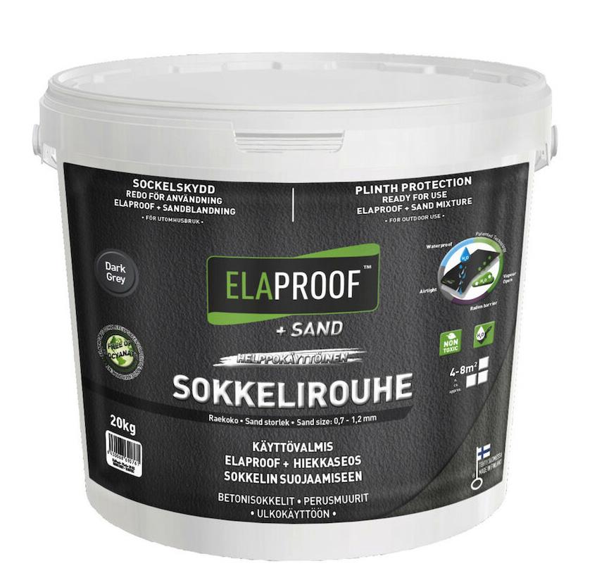 Elaproof lattiapinnoite/golvbeläggning 20 kg harmaa/grå M1-hyväksytty ElaProof+SAND Lattiapinnoite soveltuu sisä- ja ulkokäytössä mm. terasseille, portaisiin, parvekkeille./ ElaProof+SAND Golvbeläggning är M1-godkänd. Den är lämplig för inomhus- och utomhusbruk, t.ex. terrasser, trappor, balkonger. (BS27)