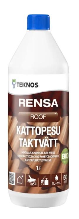 Erittäin tehokas, biologisesti hajoava pesuaine tiilikattojen ja pahoin likaantuneiden aiemmin maalattujen peltikattojen esikäsittelyyn / Rensa Roof är ett mycket effektivt tvättmedel för rengöring av takpannor av betongtegel samt för förbehandling av målade, mycket smutsiga plåttak.