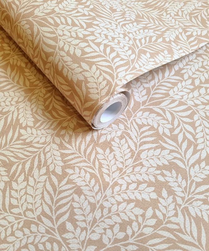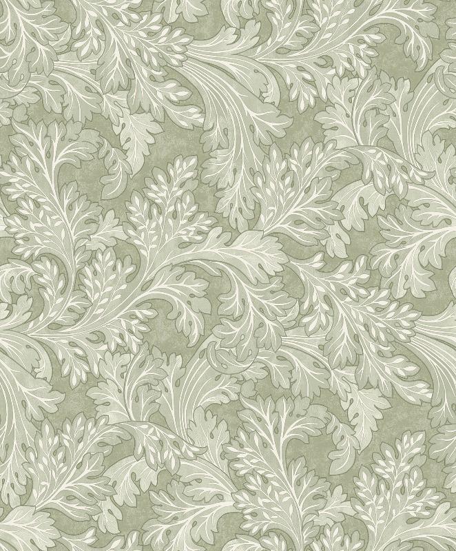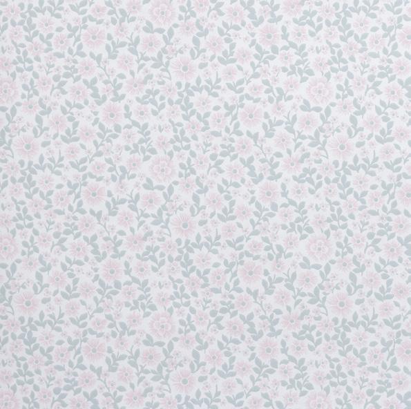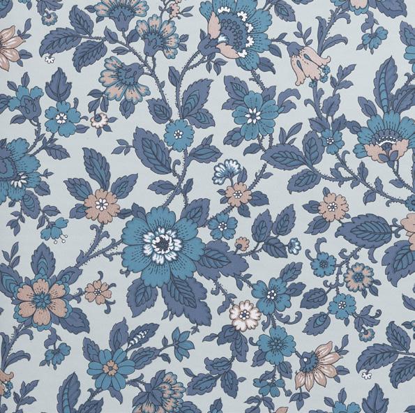 Tässä herkässä kasvi- ja lehtiaiheisessa kuosissa on vintage henkeä.