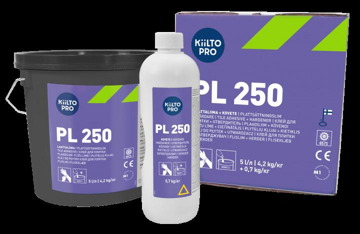 Vaalea, liuotteeton, 2-komponenttinen polyuretaaniliima seinälevyn kiinnitykseen kosteissa tiloissa. / Kakellim och härdare. Ljust färgat, lösningsmedelsfritt två-komponents polyuretanlim för limning av väggplattor.