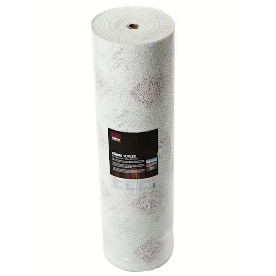 Askelääntä vaimentava yhdistelmämateriaali laminaattija parkettilattioiden alle. Toimii sekä alusmateriaalina, että kosteussuojana.