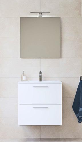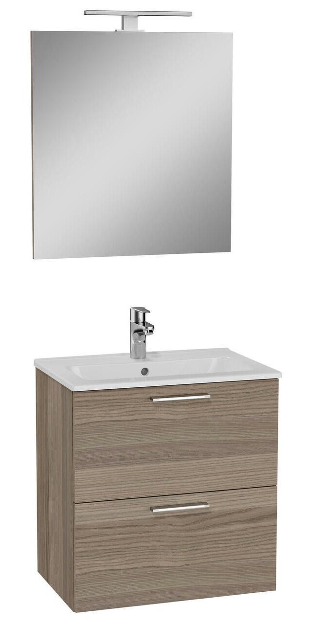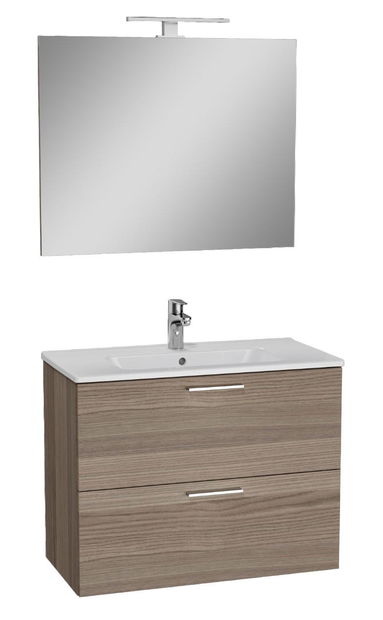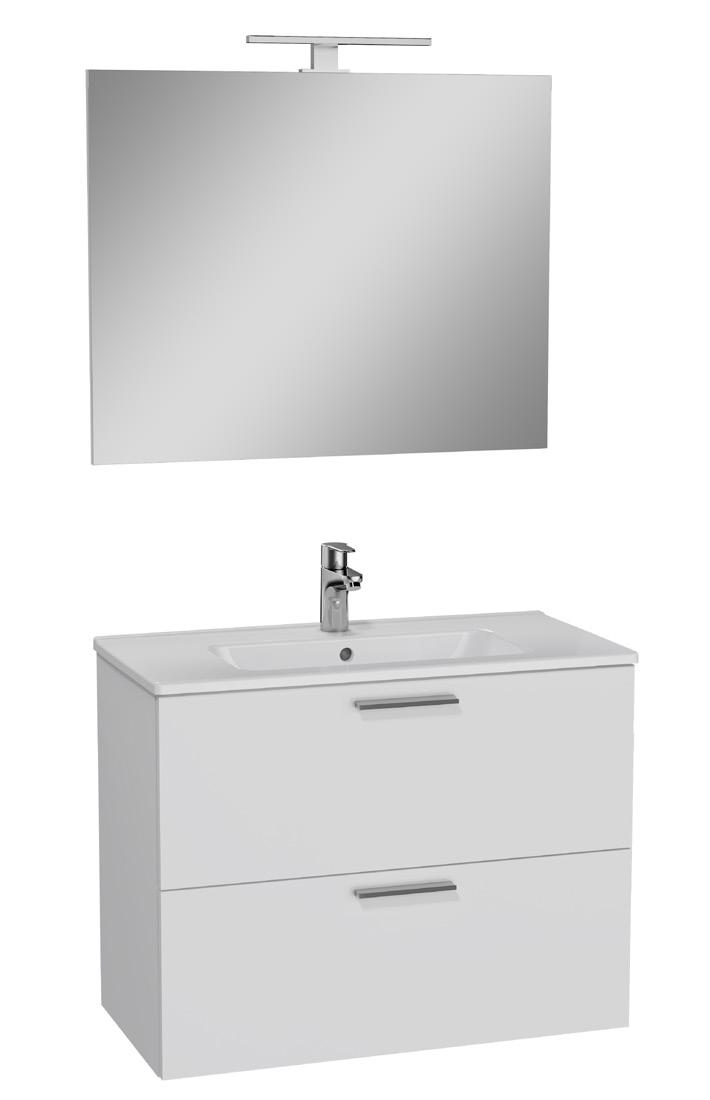 Kalustesetti Vitra 3in1 Mia 80 cm sisältää allaskaappi altaalla, peili ja LED-valaisin IP44.
