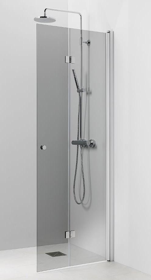 Kääntyvä taittuva suihkuseinä. 6 mm karkaistu lasi, matta-alumiini profiili ja kromattu vedin. Takuu 2 vuotta.