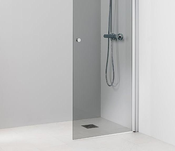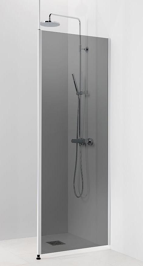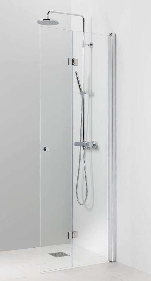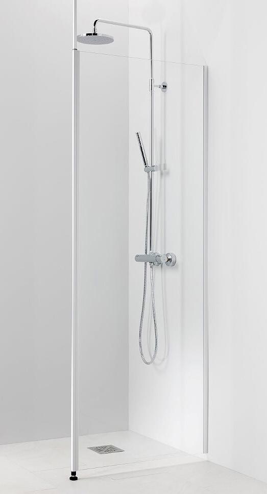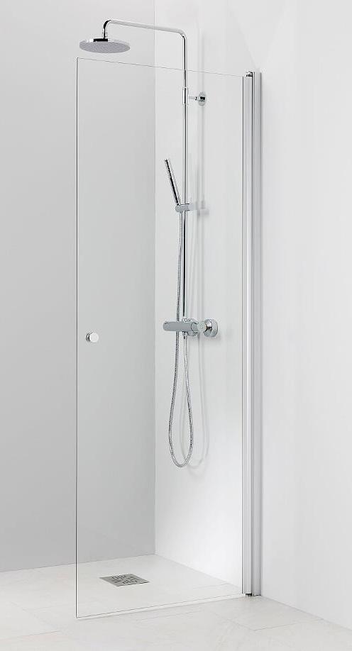 Kääntyvä suora suihkuseinä. 6 mm karkaistu lasi, matta-alumiini profiili ja kromattu vedin. Takuu 2 vuotta.