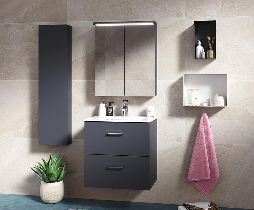 Tyylikäs, toimiva ja käytännöllinen kalustesarja kylpyhuoneeseen.