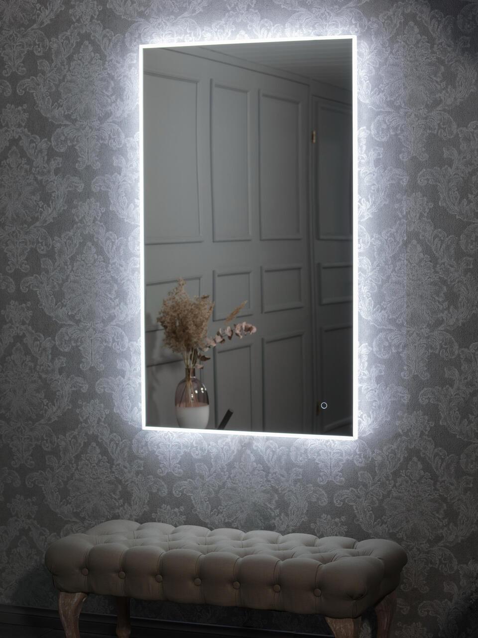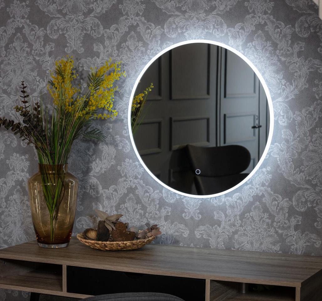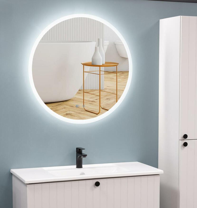 LED-valonauha kiertää peilin reunaa lasin alla. Se valaiseen sivulle. Kotelointiluokka, IP54, valopeilin paksuus 39 mm.