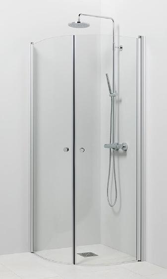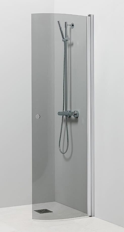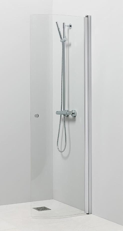 Kaareva kääntyvä suihkuseinä. 6 mm karkaistu lasi, matta-alumiini profiili ja kromattu vedin. Takuu 2 vuotta.