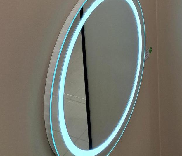 LED-valonauha kiertää peilin reunaa lasin alla. Se valaiseen sivulle.