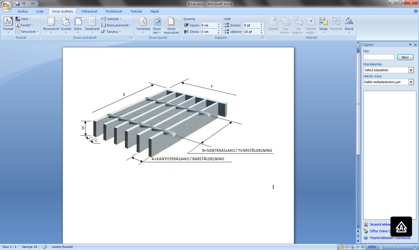 Materiaali / Material: Teräs / Stål Teräs / Stål * Sinkitty / Zinkad