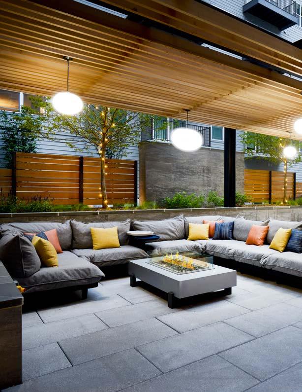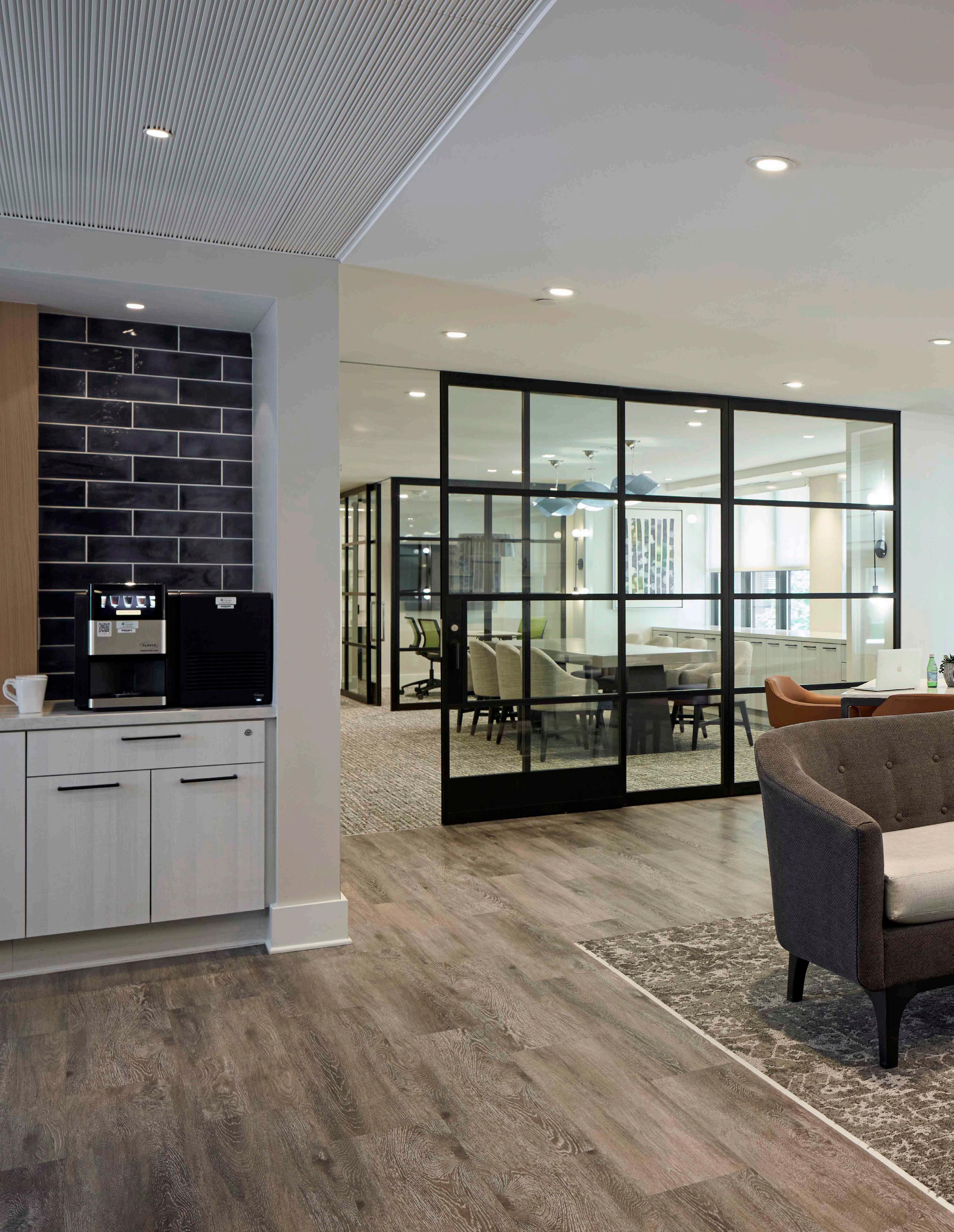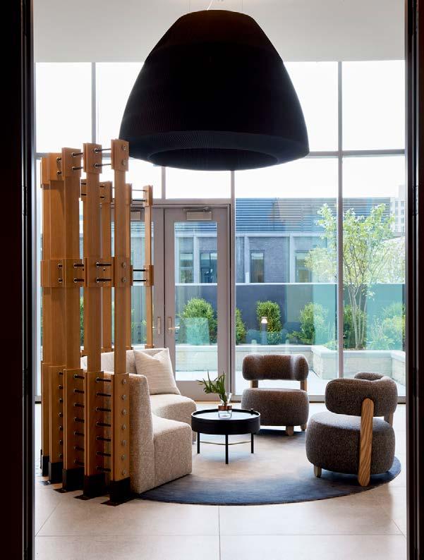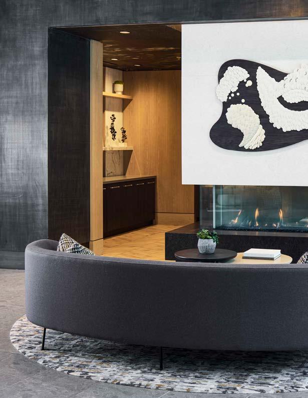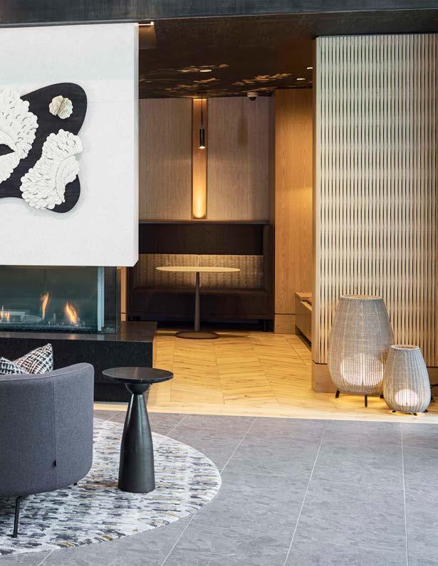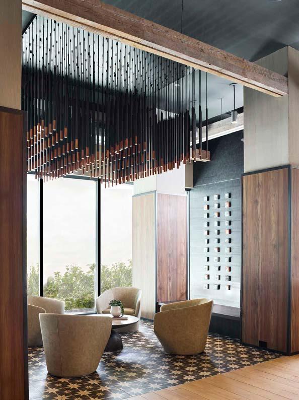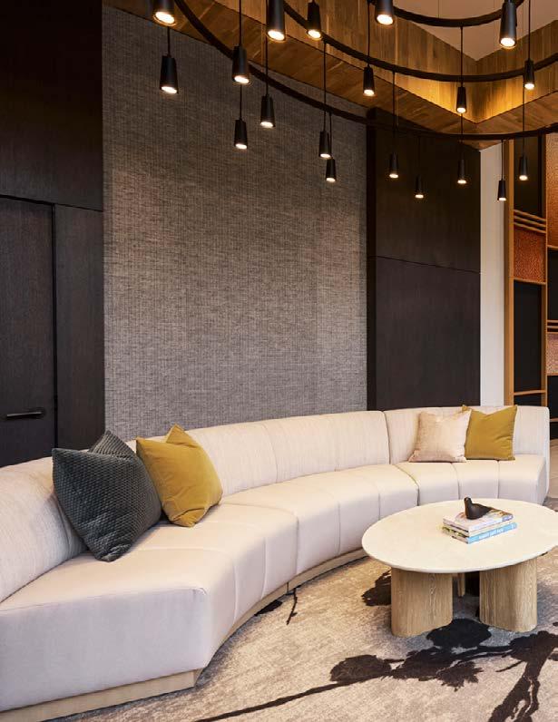 Style: Blends curated comfort with purposeful luxury, offering remote workspaces. The interior design promotes happiness and wellness through light-filled spaces, natural greenery, sustainable finishes, and thoughtful details. A welcoming fireplace and bubbling water feature set the tone, creating a serene, nature-connected environment that builds community and elevates everyday living.