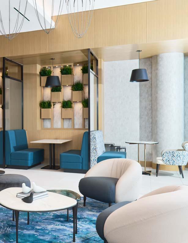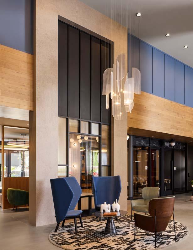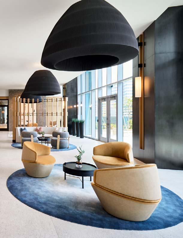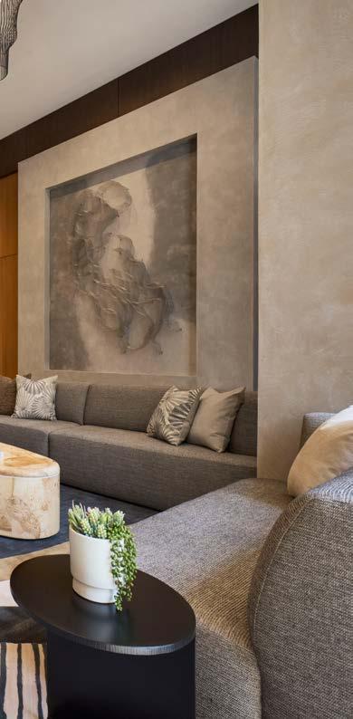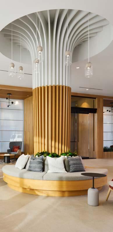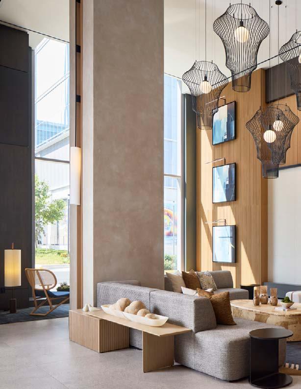Style: A biophilic design and neuroaesthetics to create spaces that support well-being and a strong indoor-outdoor connection. The interiors balance casual elegance with organic textures and modern style, using natural tones, stone, and wood throughout the double tower’s inviting common areas.