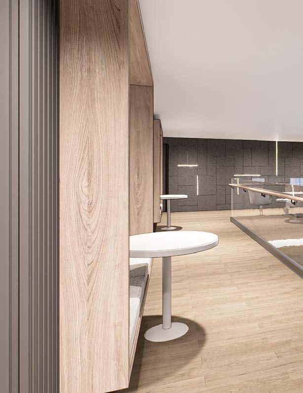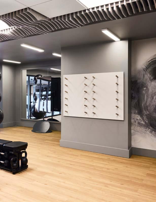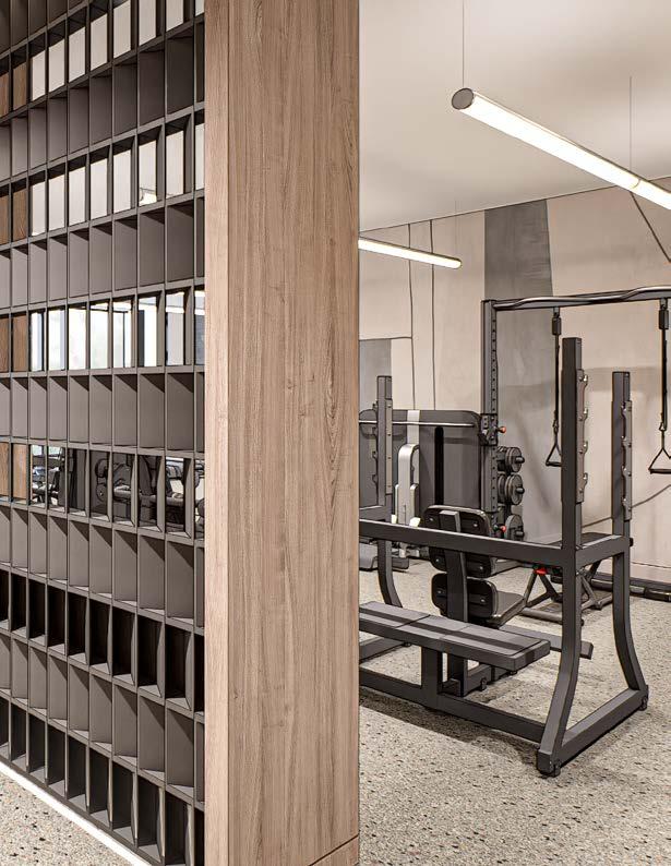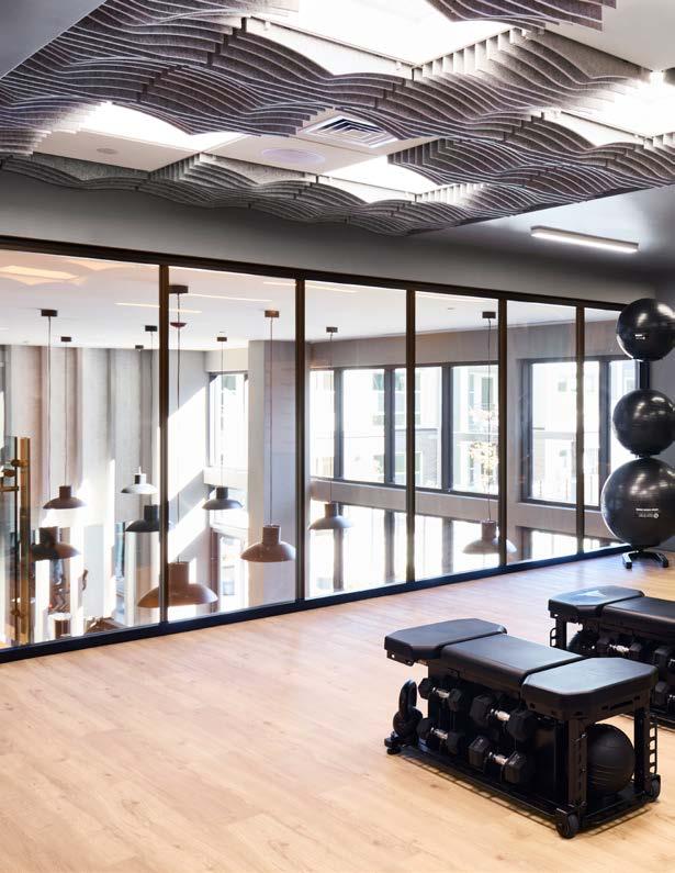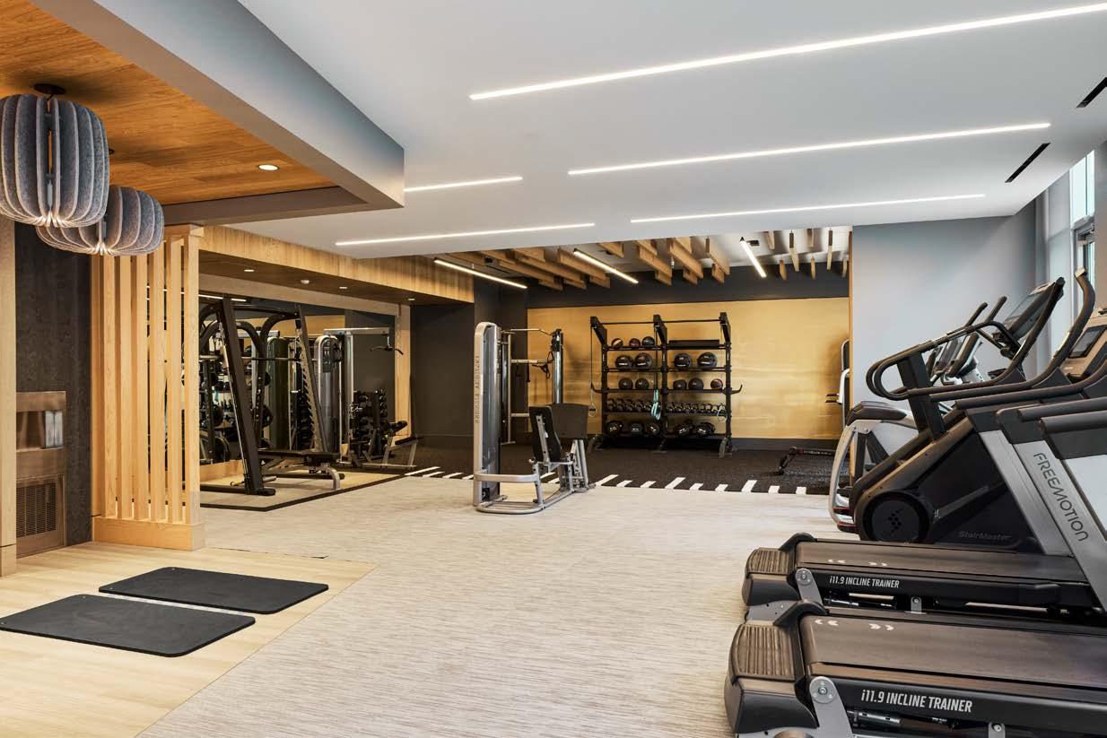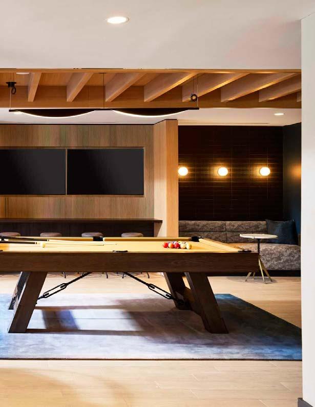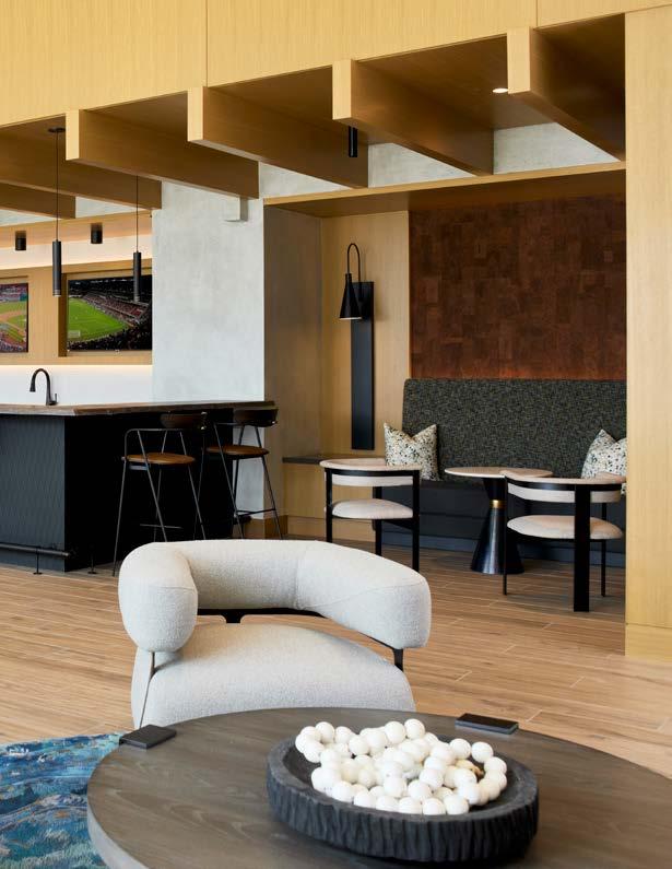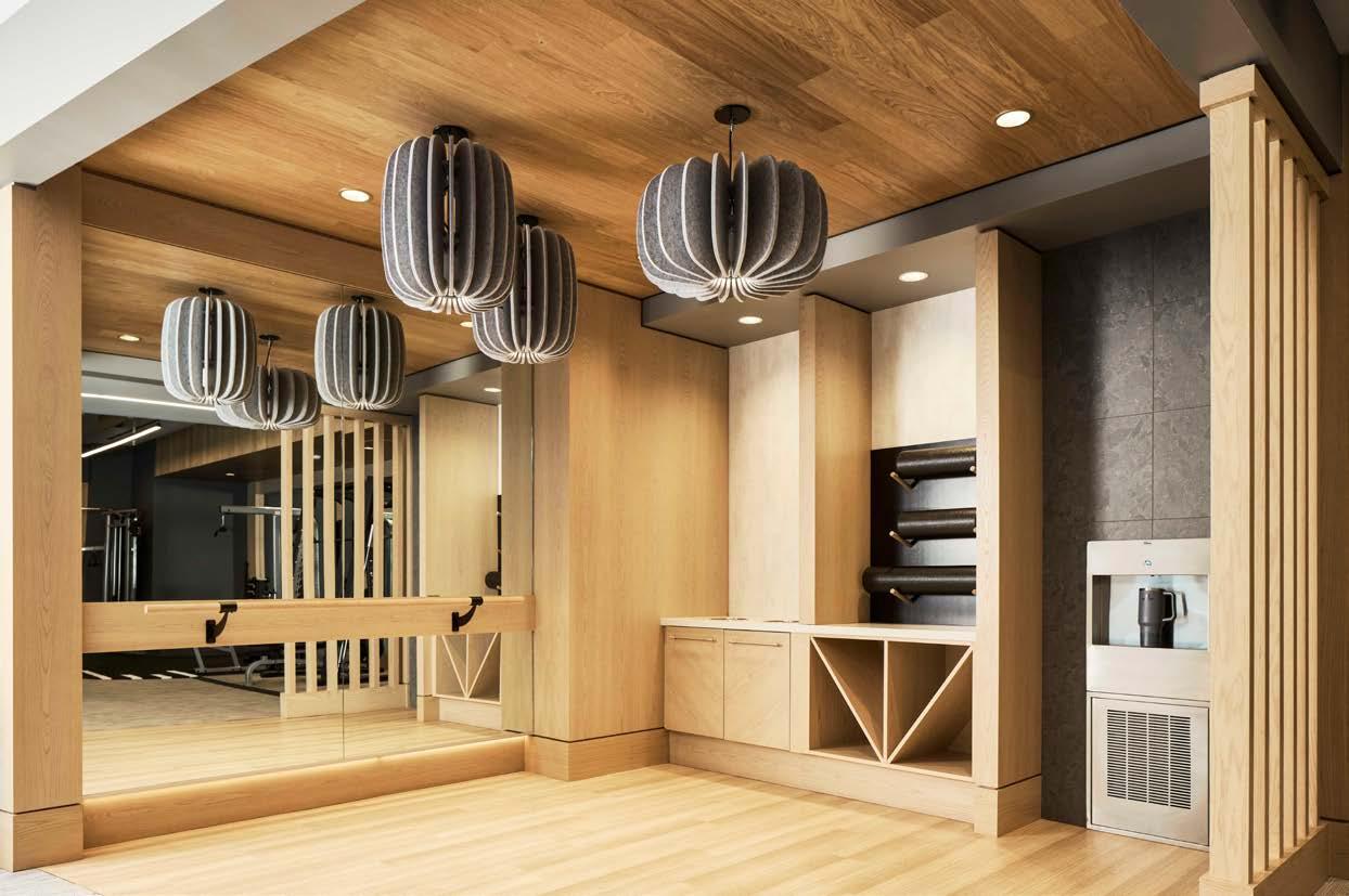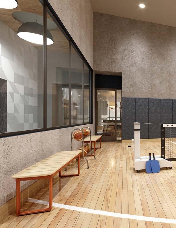 Style: A fresh, modern take on biophilic design, creating a serene connection to nature. Positioned to overlook the courtyard and pool, the amenities are filled with natural light and calming views. Warm wood, organic textures, and an earthy color palette infuse the space with wellness and sophistication, making this urban oasis both inviting and unique.