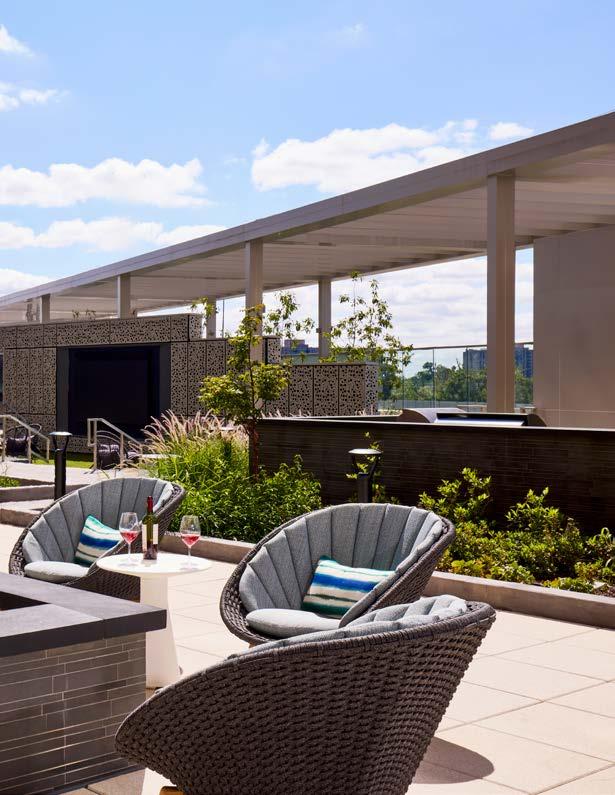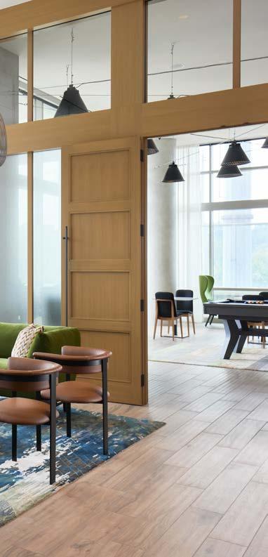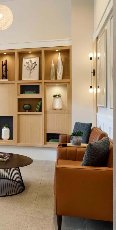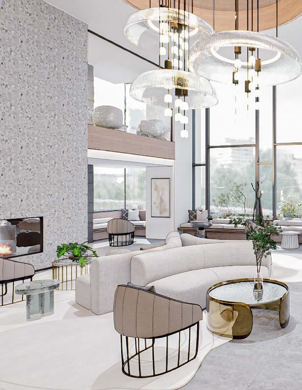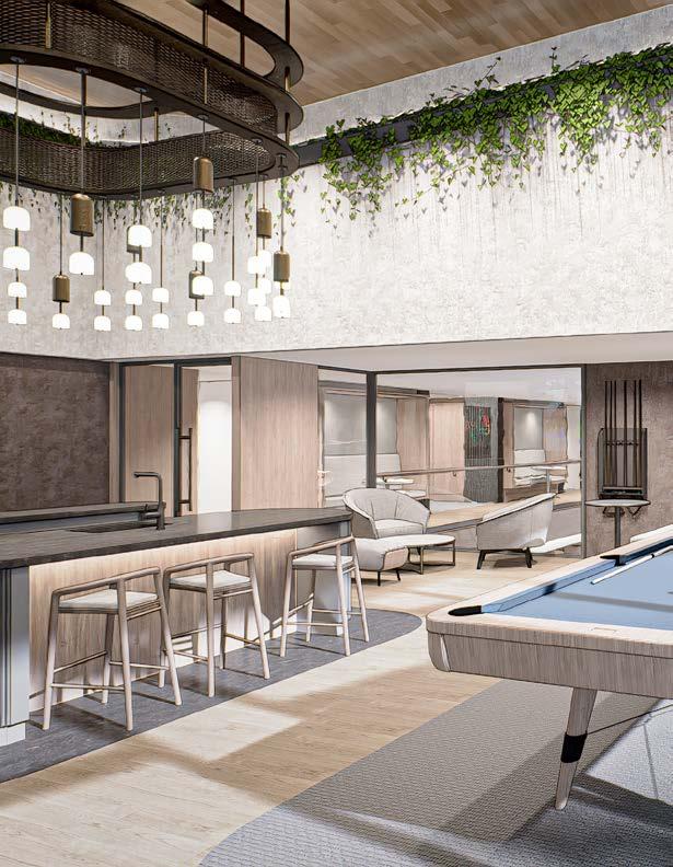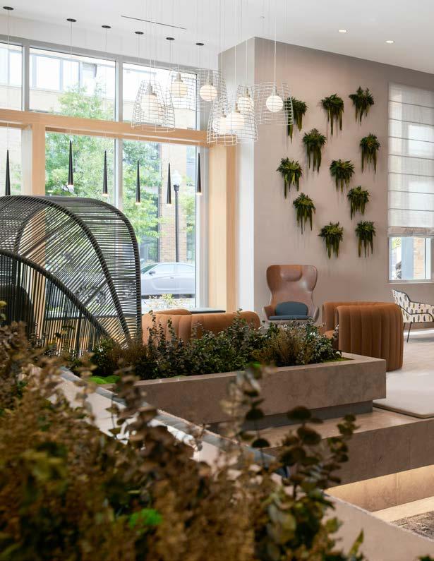 Style: A sophisticated biophilicsimple design with elegance and a retreat-like feel, with a unique, hospitality-driven living experience. Wellness-focused amenities and sleek, modern finishes create a stylish, calming space.