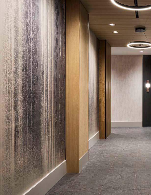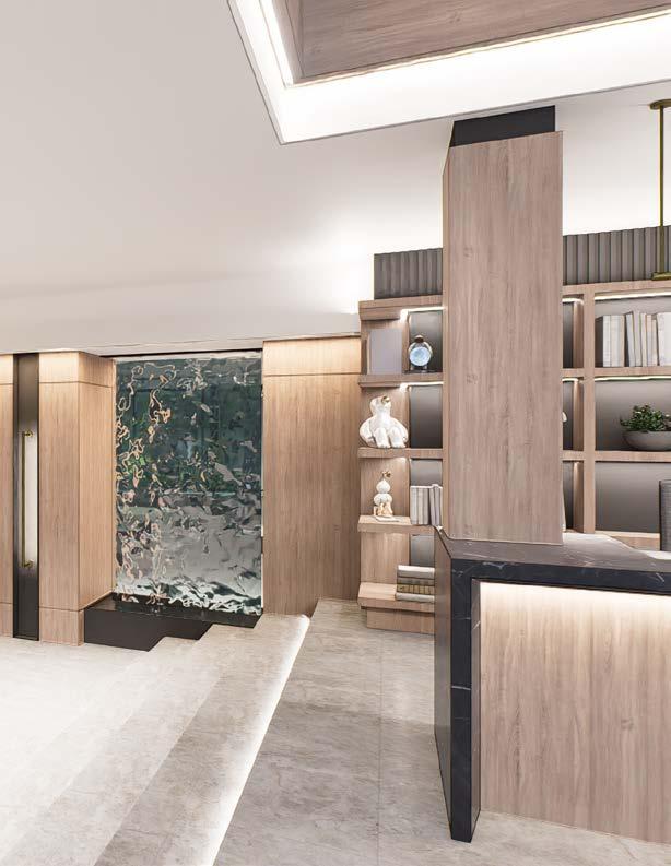 Style: Rooted in a palette of soft neutrals and natural, tactile finishes, the interiors balance casual sophistication with biophilic principles—bringing greenery, water, and fire into the daily experience through lush planters, a calming water feature, and a modern fireplace. Striking light fixtures, curated digital art, and clean architectural detailing complete the refined yet welcoming atmosphere, offering residents a harmonious, urban retreat in the heart of the city.