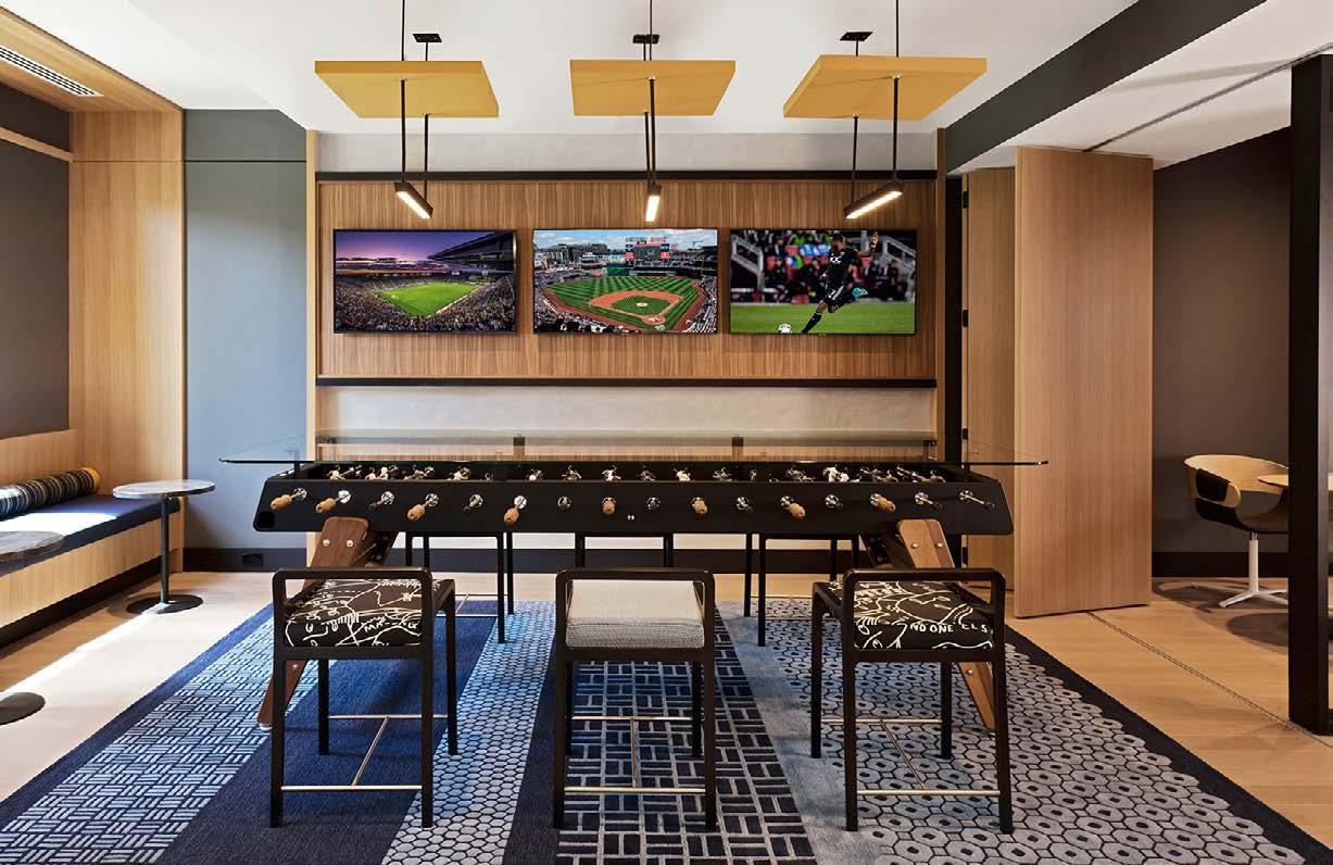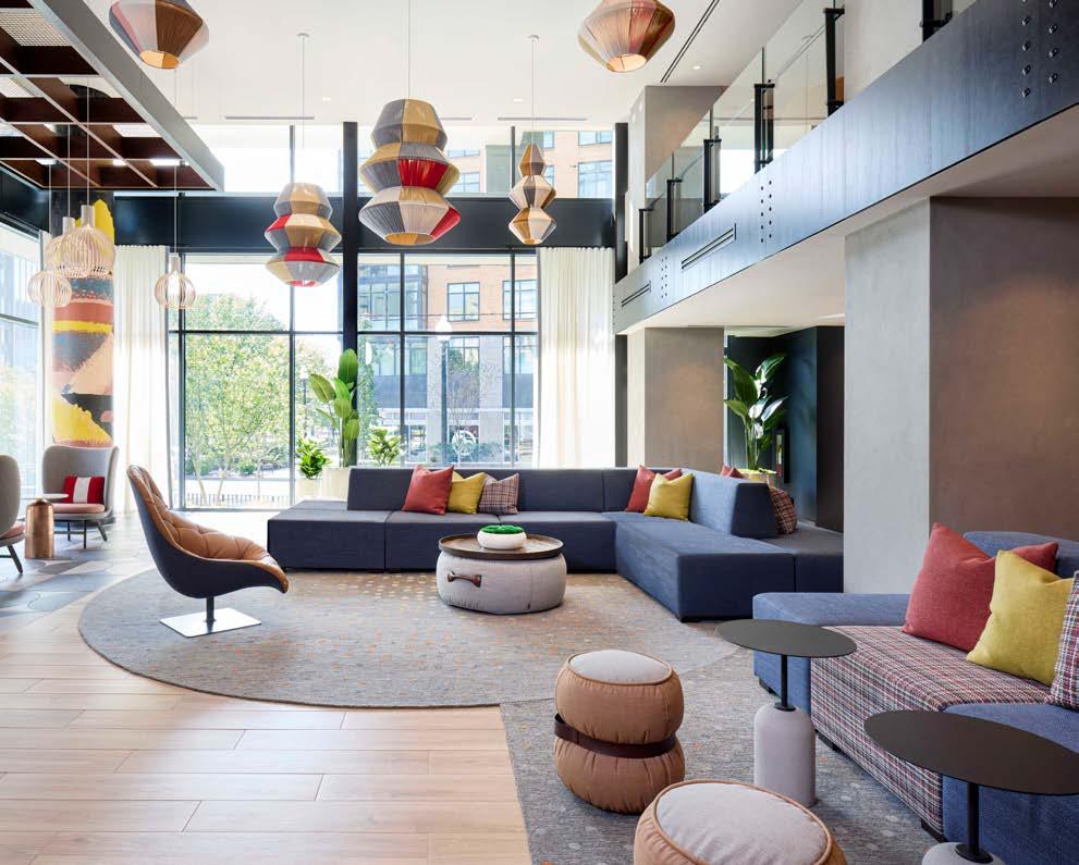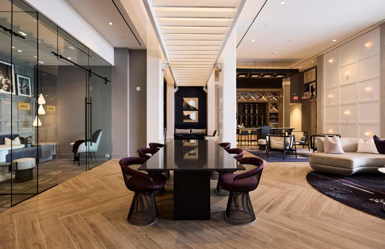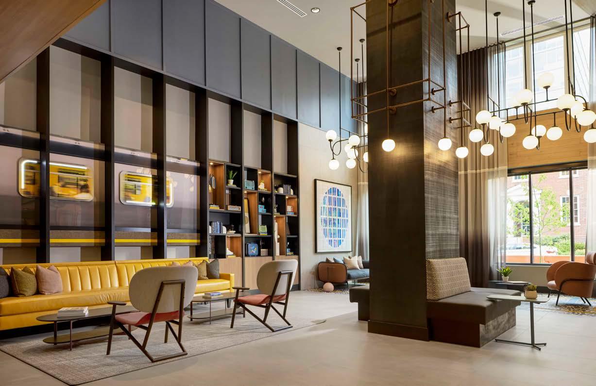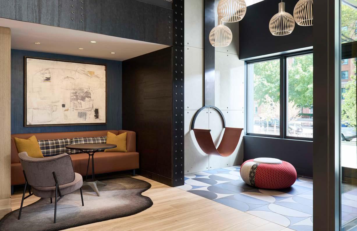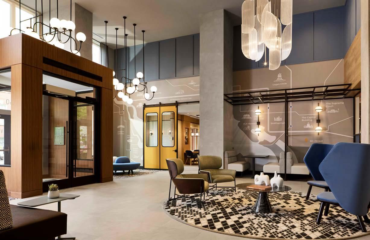 Style: Inspired by the raw energy and street art culture of South New York Avenue, captures the bold, artistic spirit of the NoMa community. Graffitiinspired murals, exposed materials, neon-lit artwork, and grid-patterned lighting fuse the building. Every detail from the dark lobby floor mirroring the pavement outside to custom art installations celebrates the colorful, textured, and expressive identity of its urban surroundings.