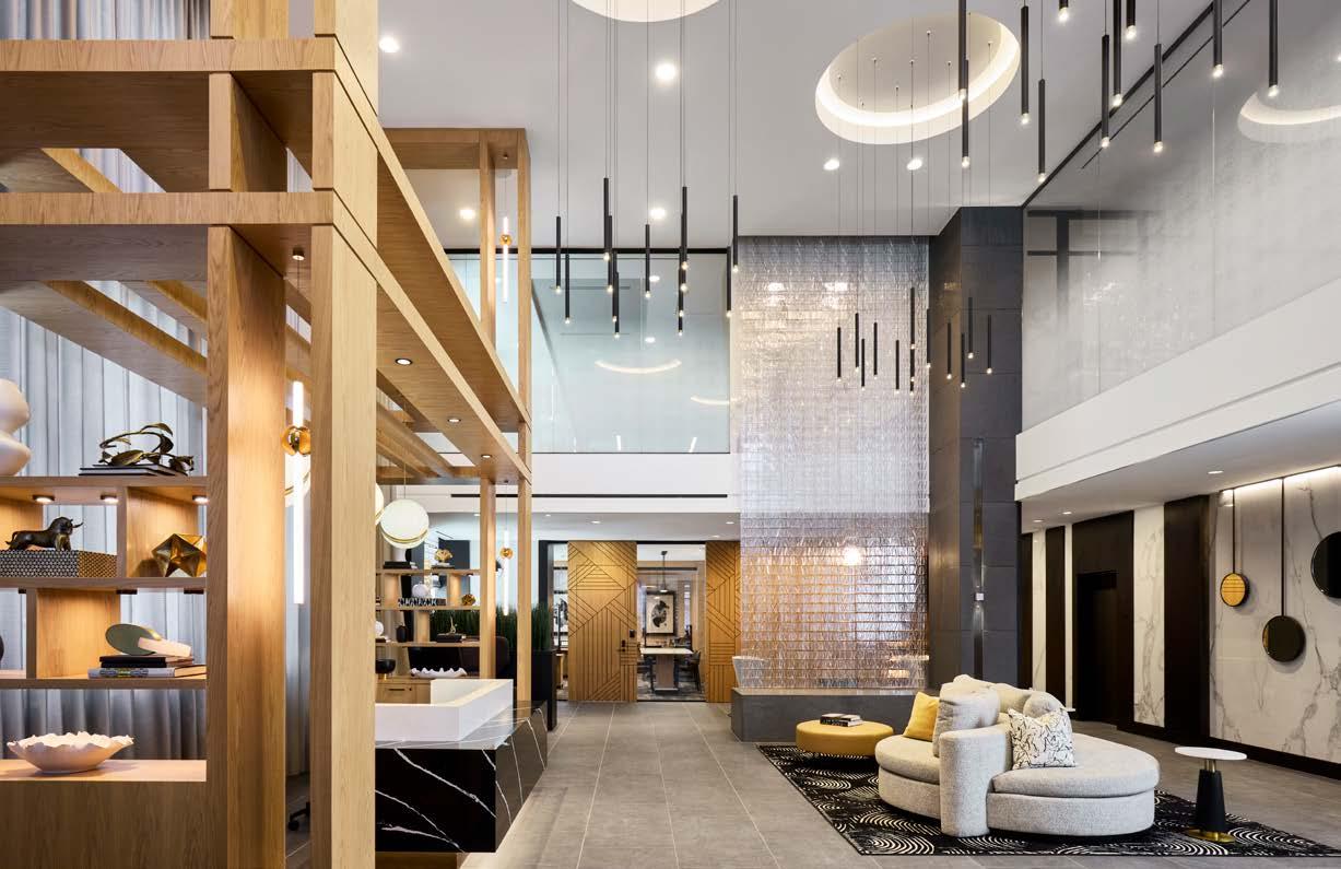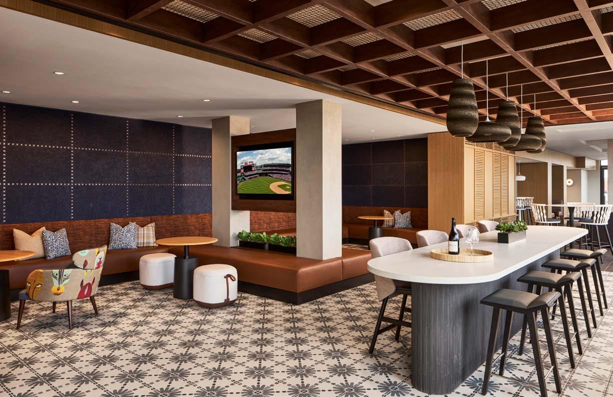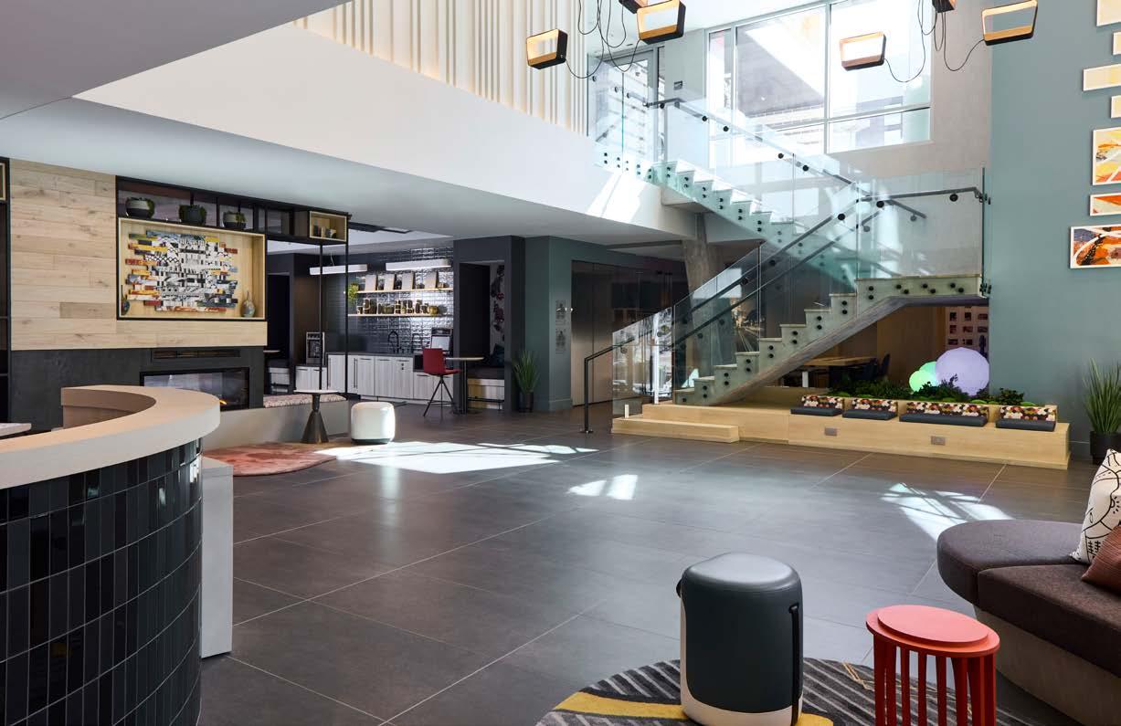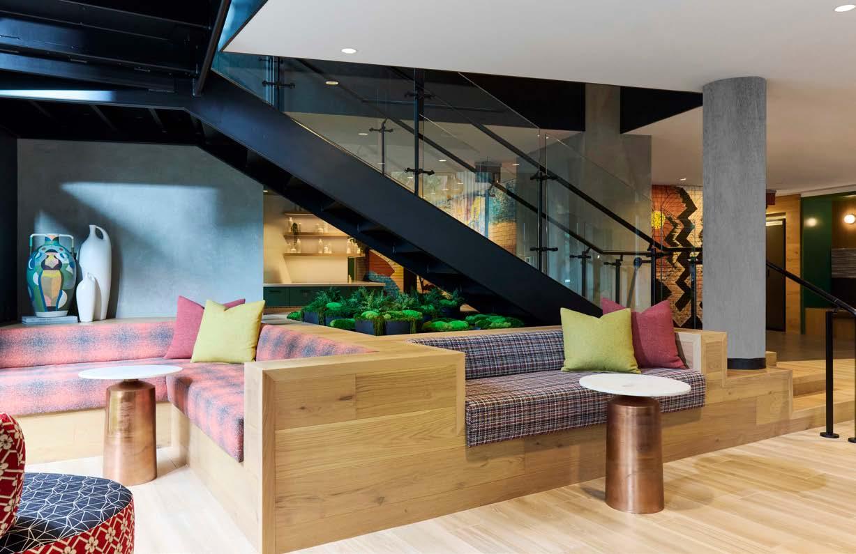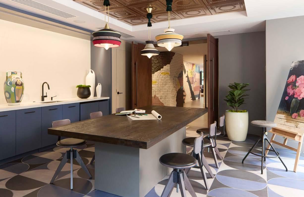 Style: Inspired by the raw energy and street art culture of South New York Avenue, captures the bold, artistic spirit of the NoMa community. Graffitiinspired murals, exposed materials, neon-lit artwork, and grid-patterned lighting fuse the building. Every detail from the dark lobby floor mirroring the pavement outside to custom art installations celebrates the colorful, textured, and expressive identity of its urban surroundings.