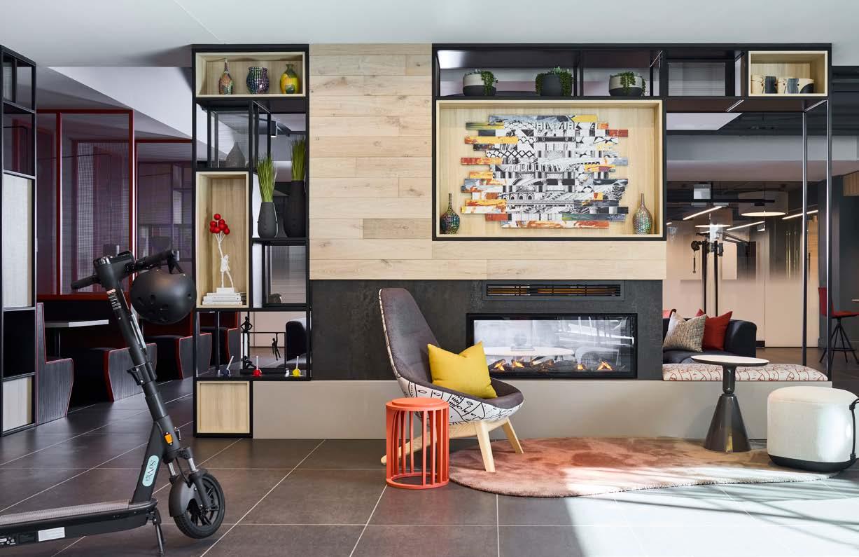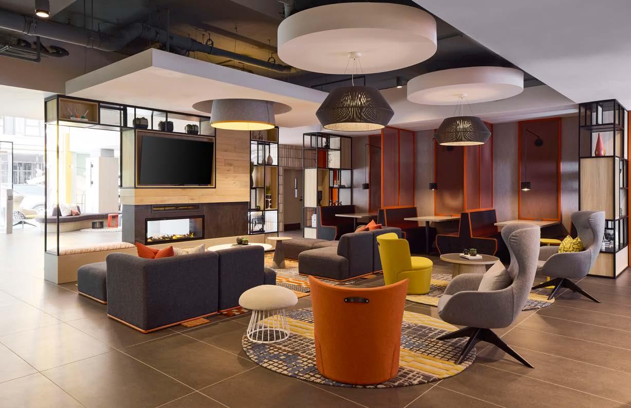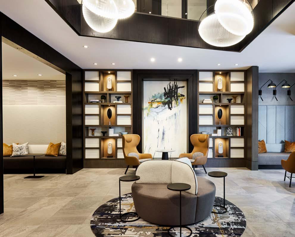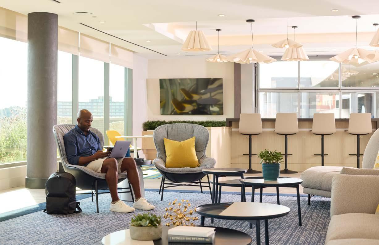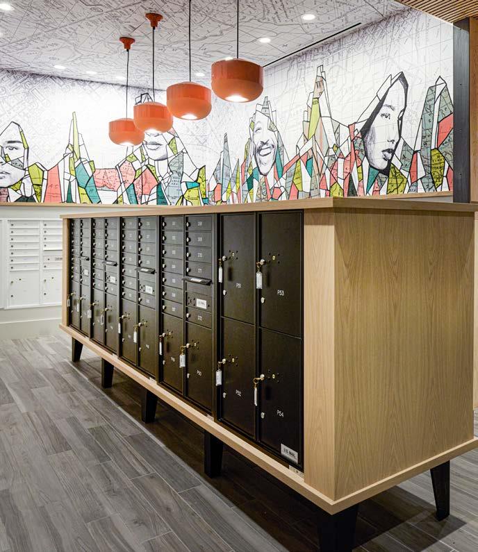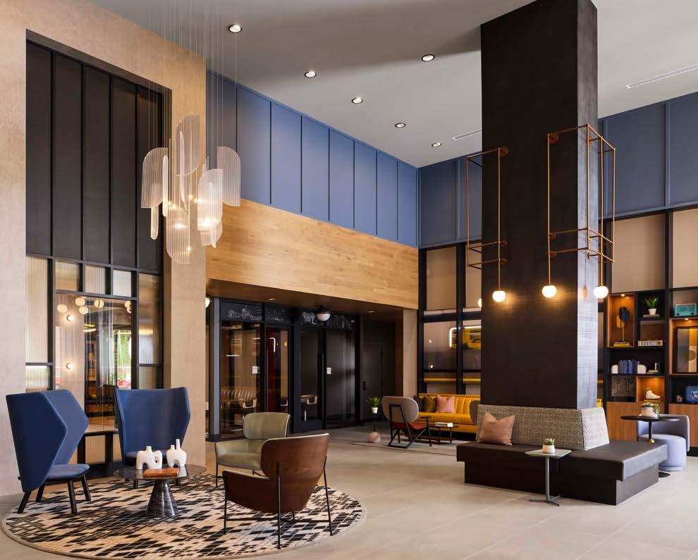 Style: Inspired by the raw energy and street art culture of South New York Avenue, captures the bold, artistic spirit of the NoMa community. Graffitiinspired murals, exposed materials, neon-lit artwork, and grid-patterned lighting fuse the building. Every detail from the dark lobby floor mirroring the pavement outside to custom art installations celebrates the colorful, textured, and expressive identity of its urban surroundings.