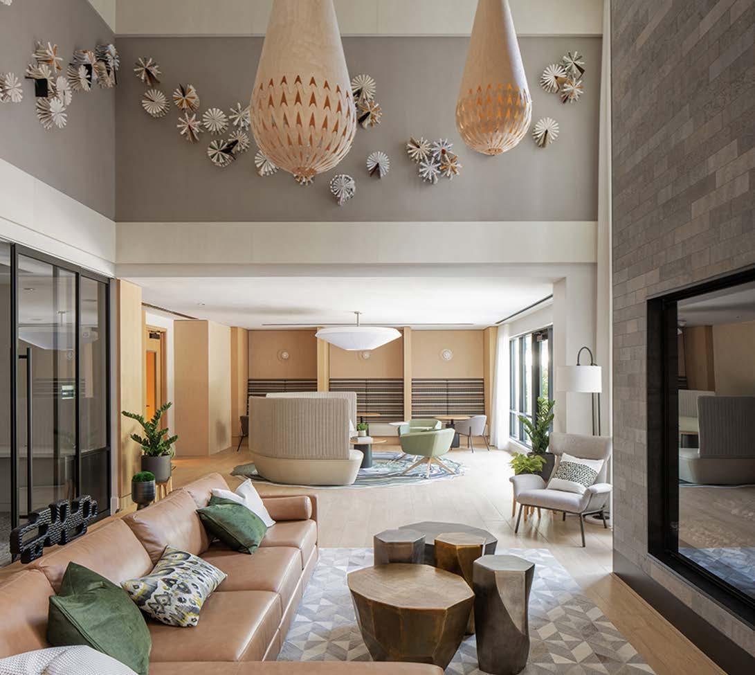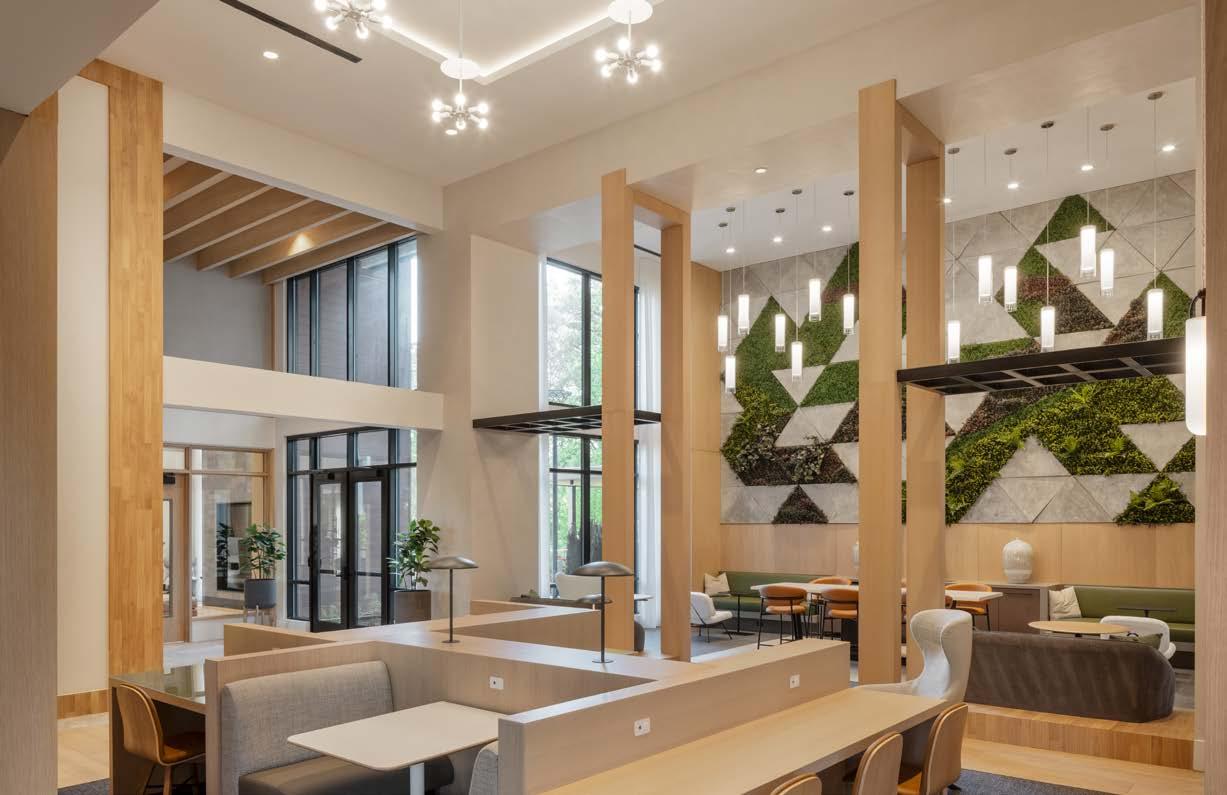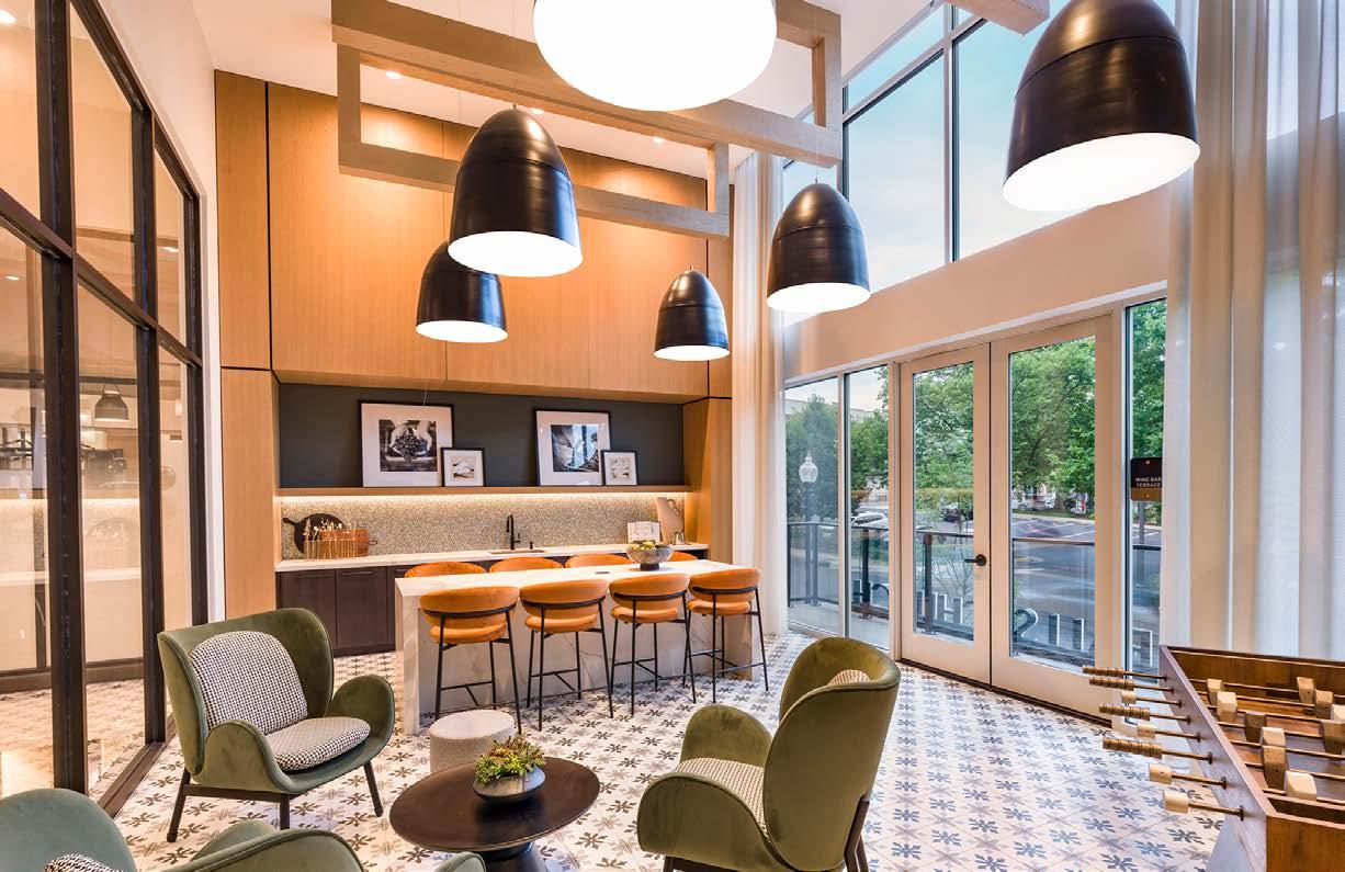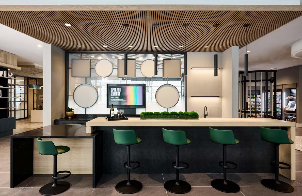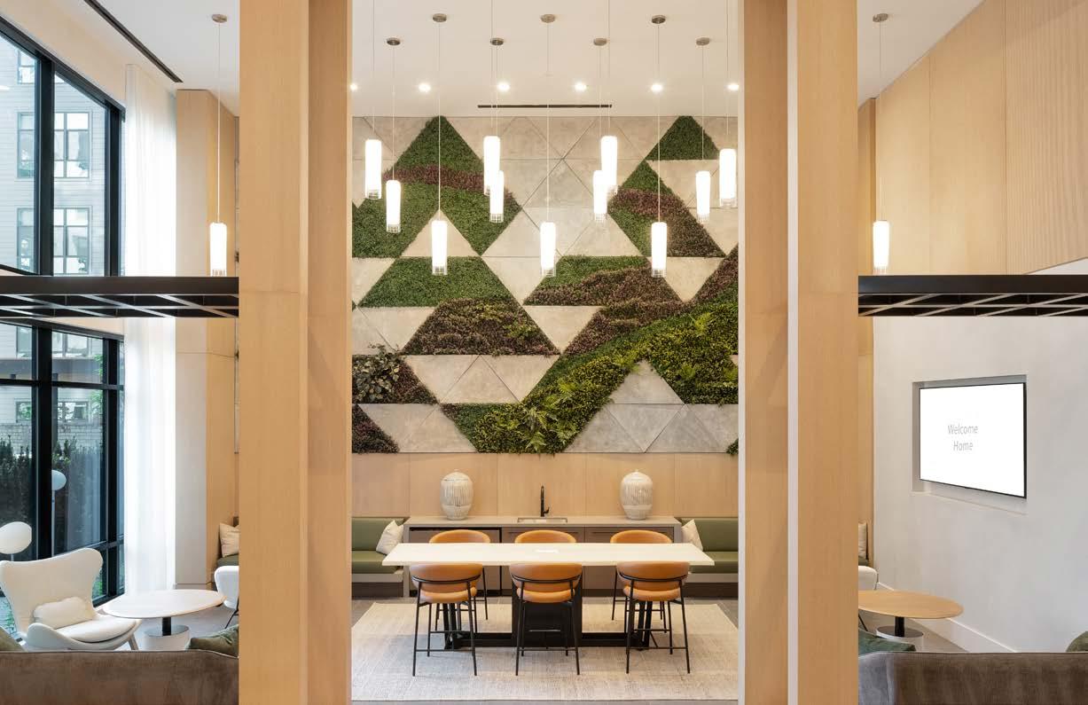 Awards: NAHB Multifamily Pillars of the Industry Finalist - Best Mid-Rise Apartment Community Project Type: Multifamily Style: Contemporary biophilic principles with the energy of a modern TechHub. It has a strong visual connection to the lively Washington Blvd, the interiors feature biophilic patterns that foster well-being and calm in an urban environment. Its amenity-rich and community-focused with whimsical lighting, murals, and furnishings that reflect the creative spirit of the artsy, innovative district.