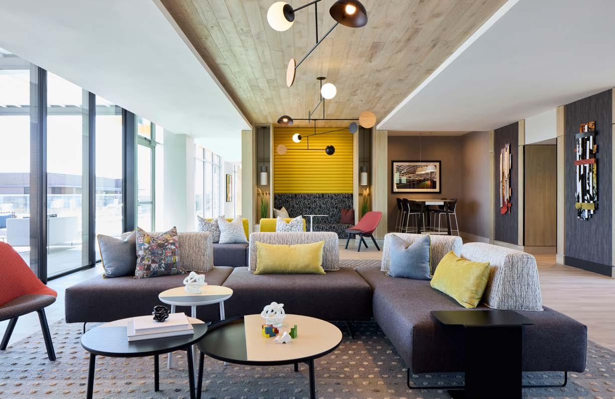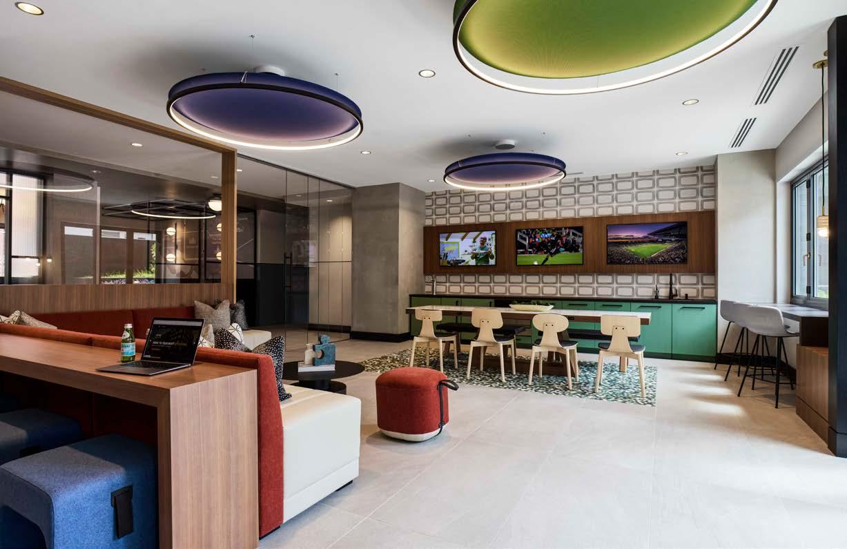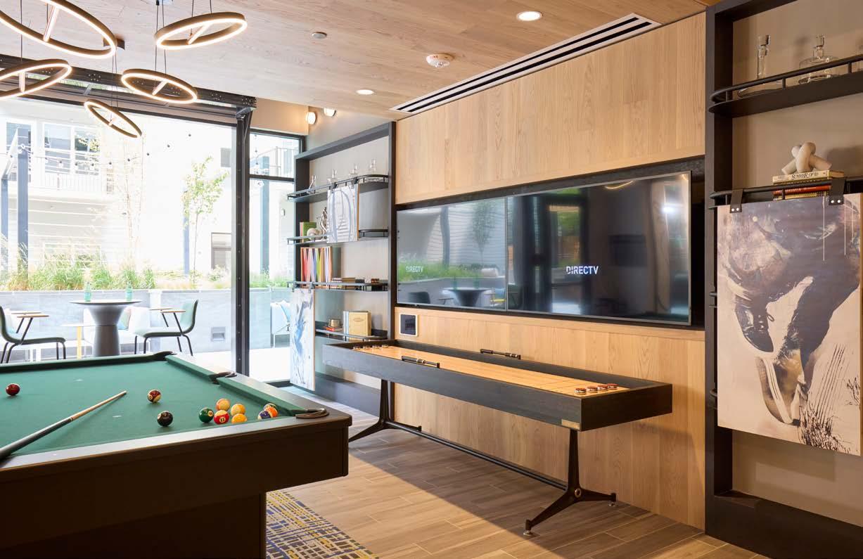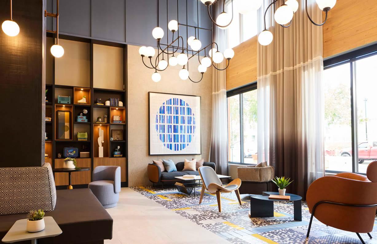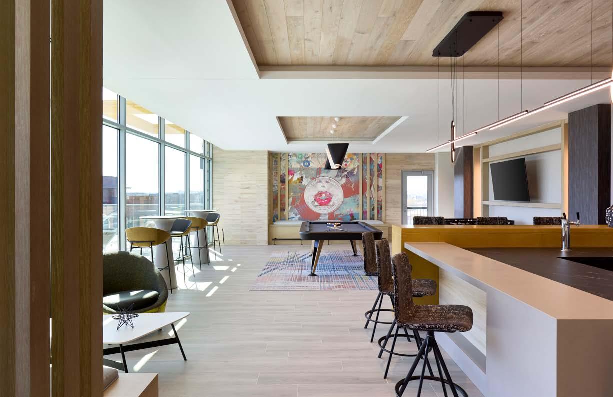 Awards: NAHB Multifamily Pillars of the Industry Finalist - Best Mid-Rise Apartment Community Project Type: Multifamily Style: Contemporary biophilic principles with the energy of a modern TechHub. It has a strong visual connection to the lively Washington Blvd, the interiors feature biophilic patterns that foster well-being and calm in an urban environment. Its amenity-rich and community-focused with whimsical lighting, murals, and furnishings that reflect the creative spirit of the artsy, innovative district.