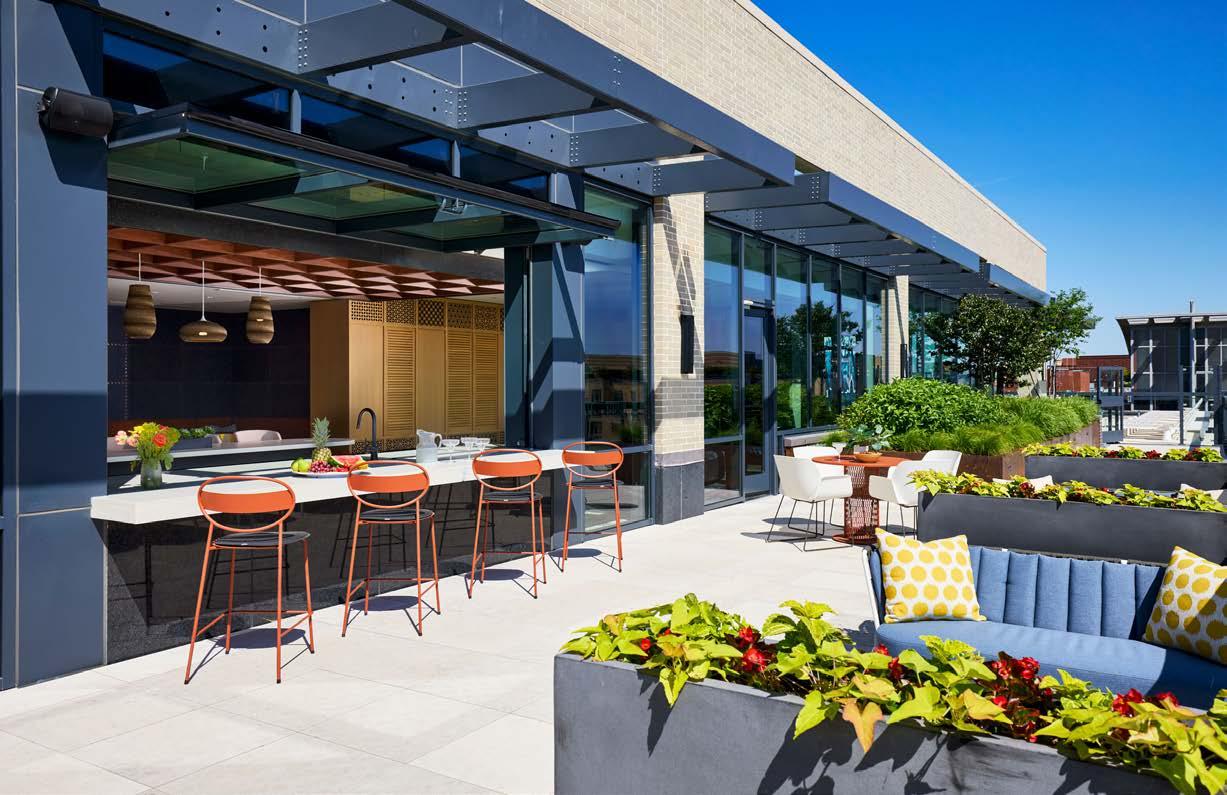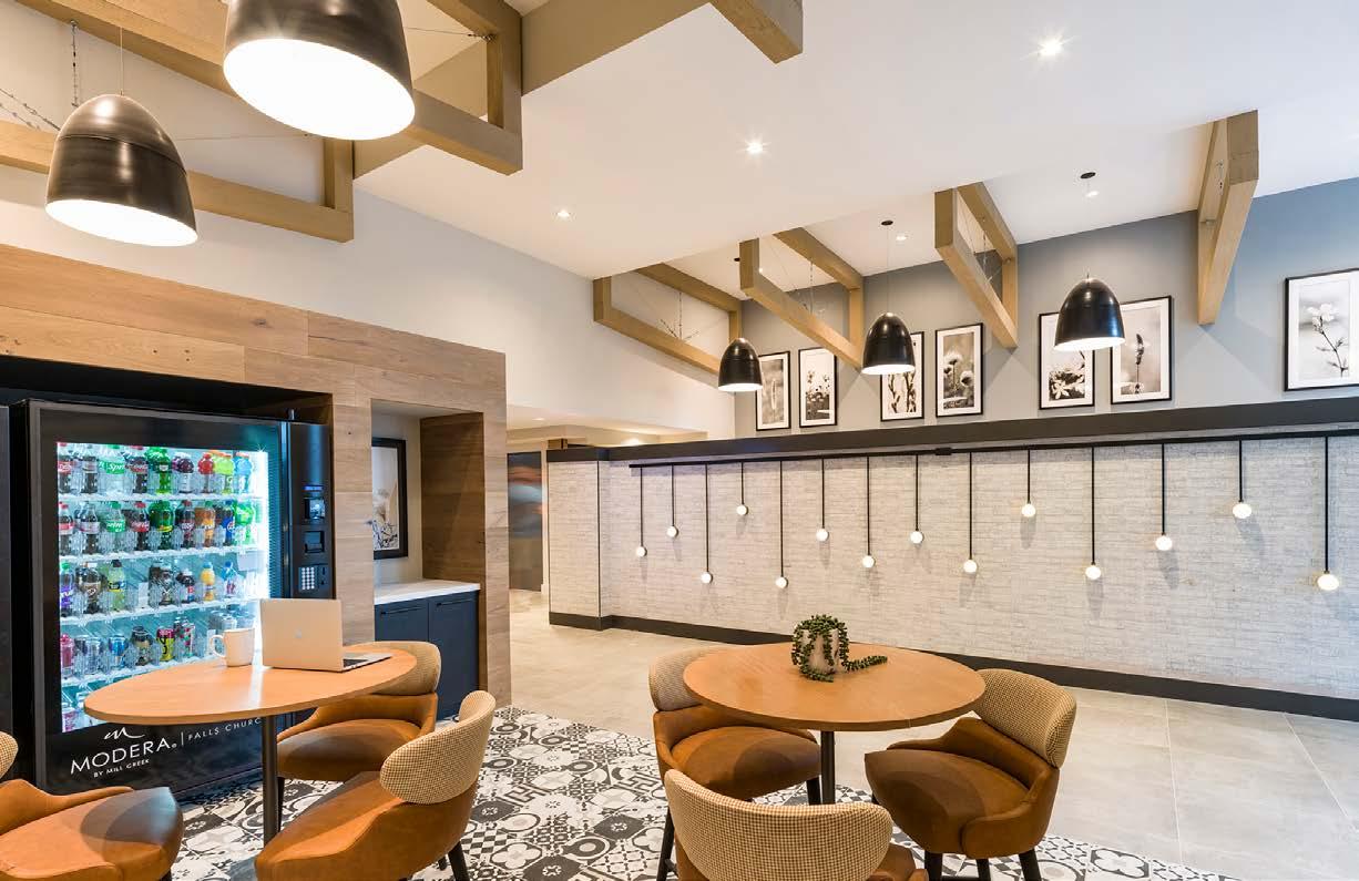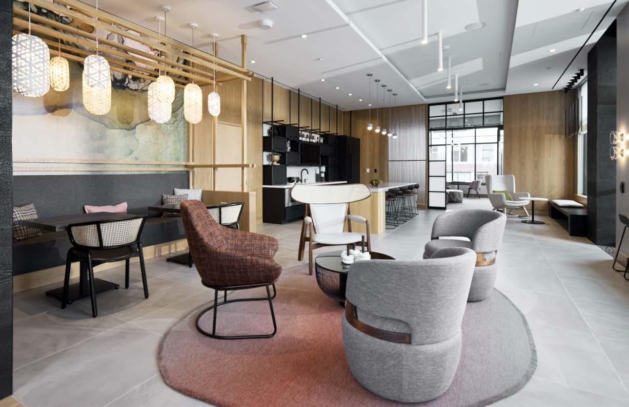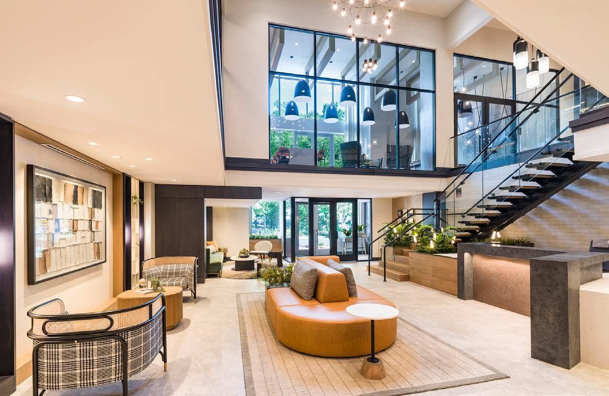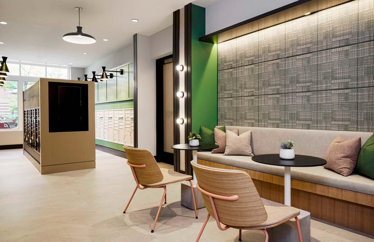 Awards: NAHB Multifamily Pillars of the Industry Finalist - Best Mid-Rise Apartment Community Project Type: Multifamily Style: Contemporary biophilic principles with the energy of a modern TechHub. It has a strong visual connection to the lively Washington Blvd, the interiors feature biophilic patterns that foster well-being and calm in an urban environment. Its amenity-rich and community-focused with whimsical lighting, murals, and furnishings that reflect the creative spirit of the artsy, innovative district.
