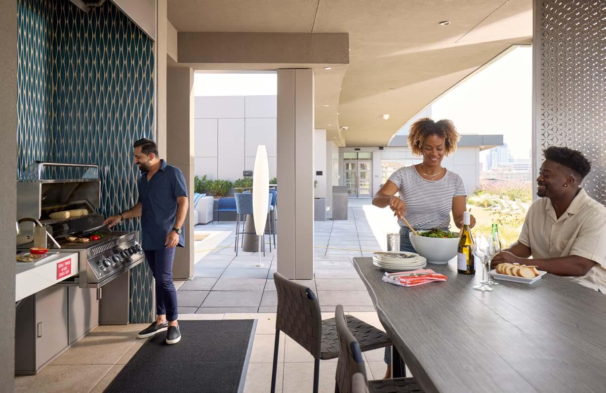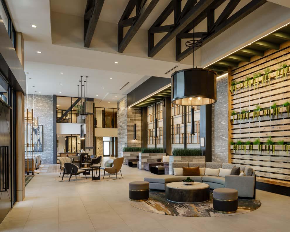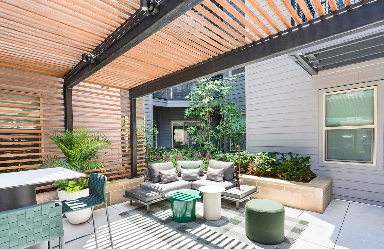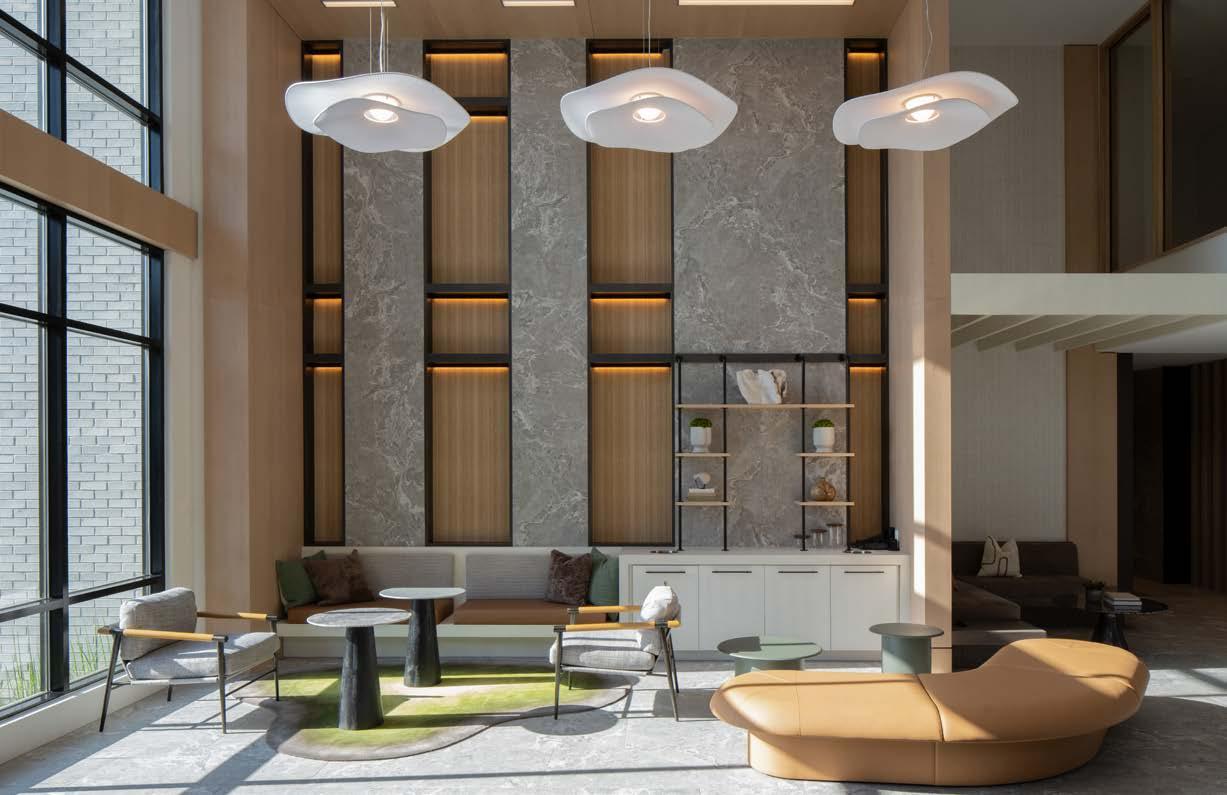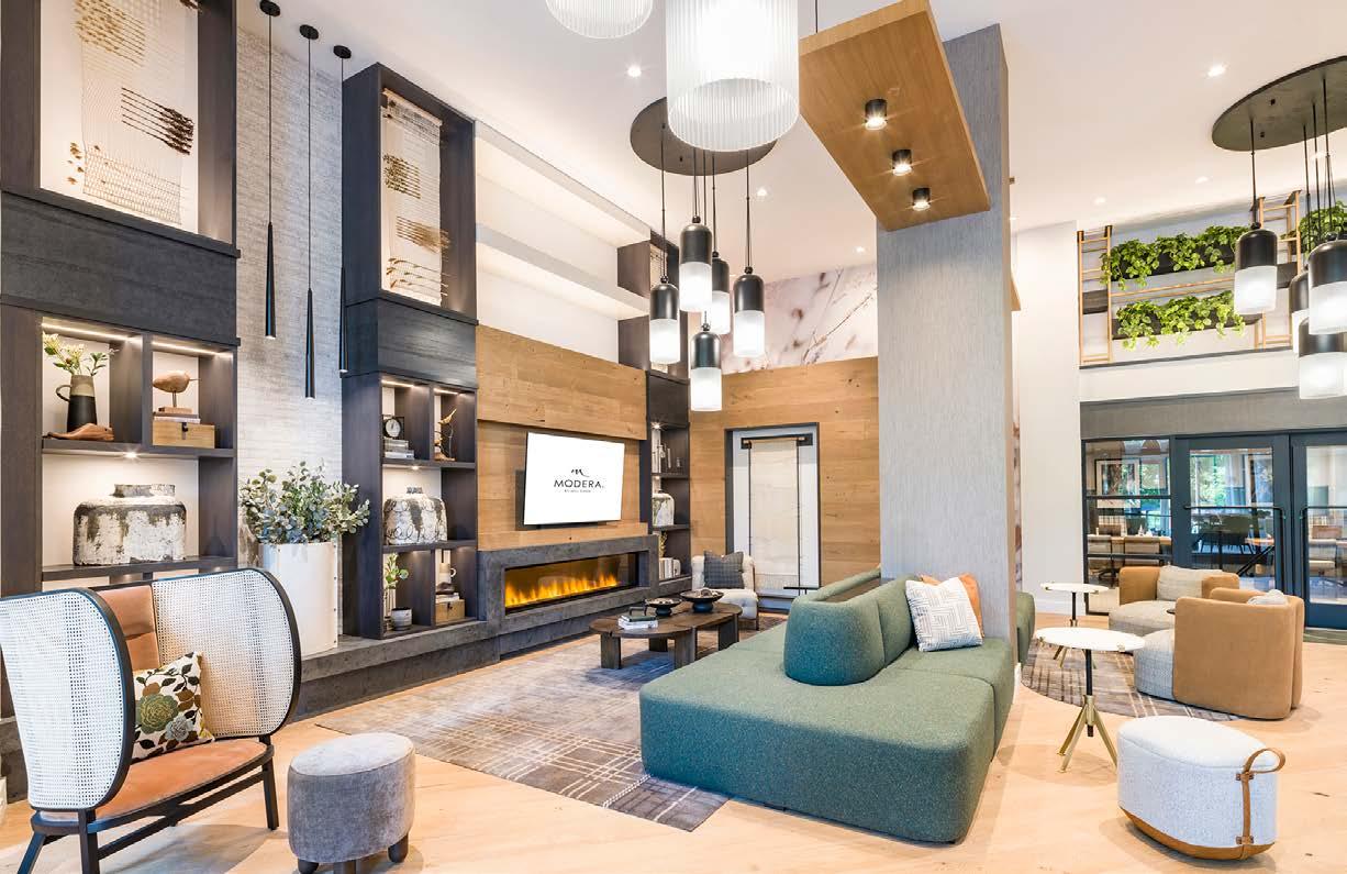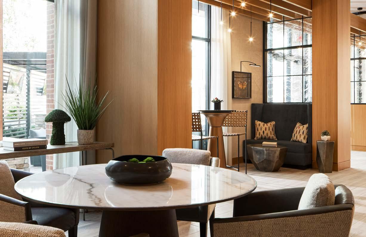 Multifamily Style: Nature and daily life intertwine through biophilic design, blurring the line between indoors and out. Thoughtfully curated interiors balance work, leisure, and relaxation, supporting the multifaceted lifestyles of residents. The result is a living experience where nature flows seamlessly into everyday moments.