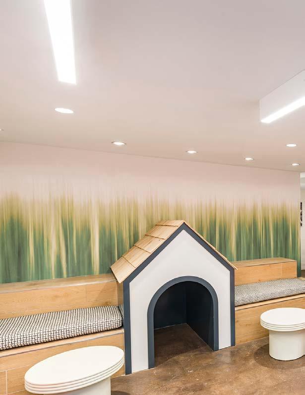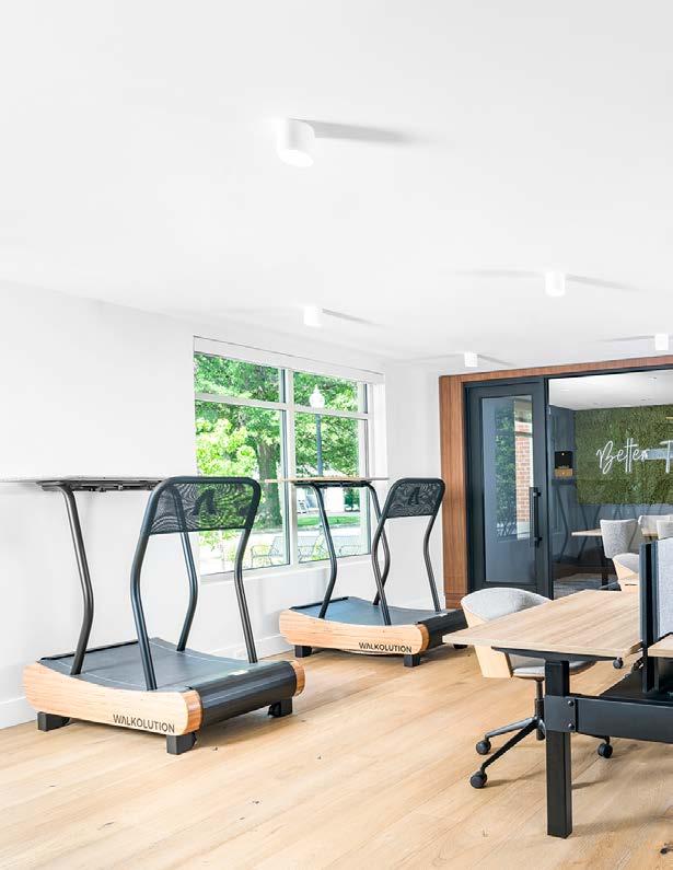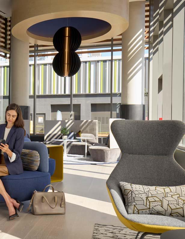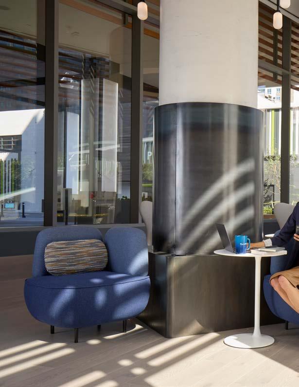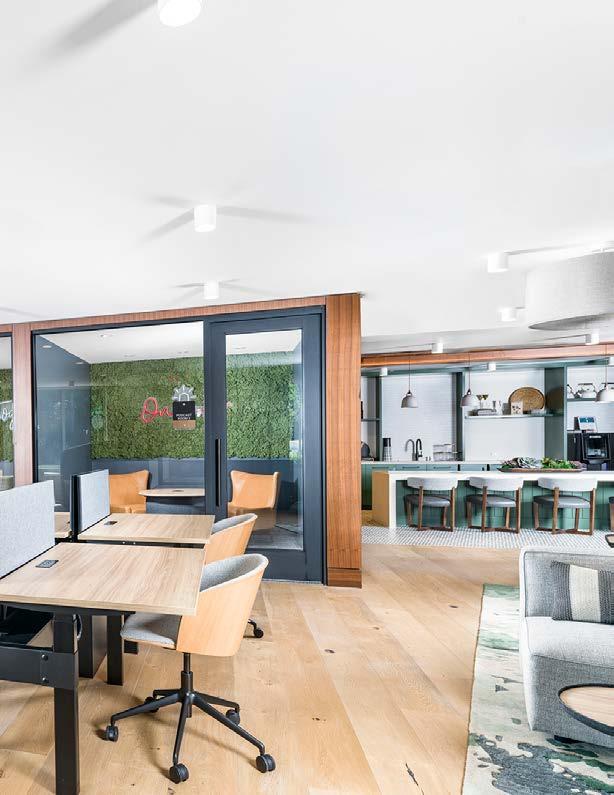 Style: Contemporary biophilic principles with the energy of a modern TechHub. It has a strong visual connection to the lively Washington Blvd, the interiors feature biophilic patterns that foster well-being and calm in an urban environment. Its amenity-rich and community-focused with whimsical lighting, murals, and furnishings that reflect the creative spirit of the artsy, innovative district.