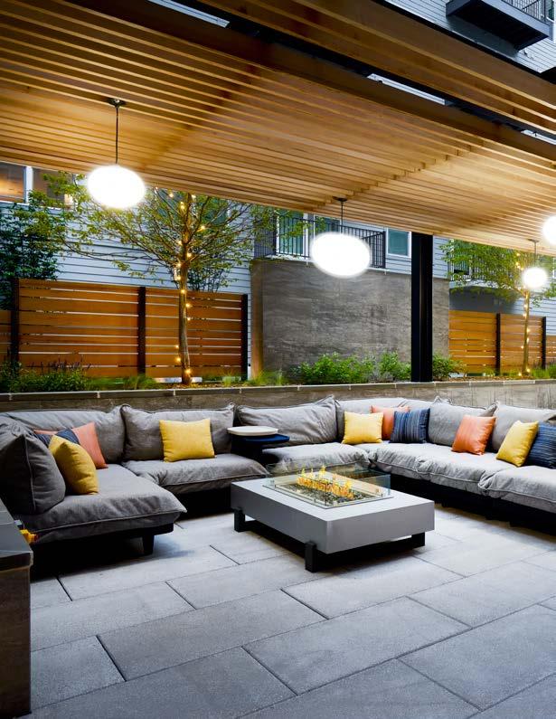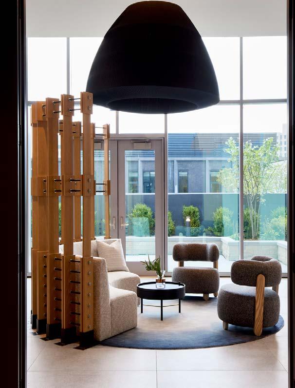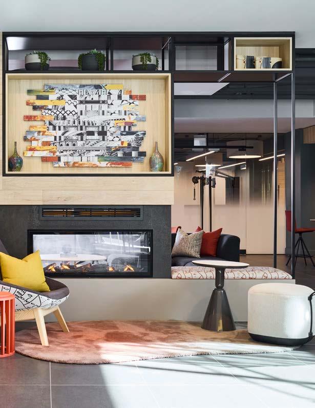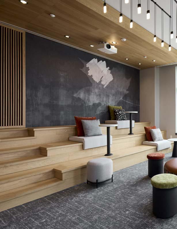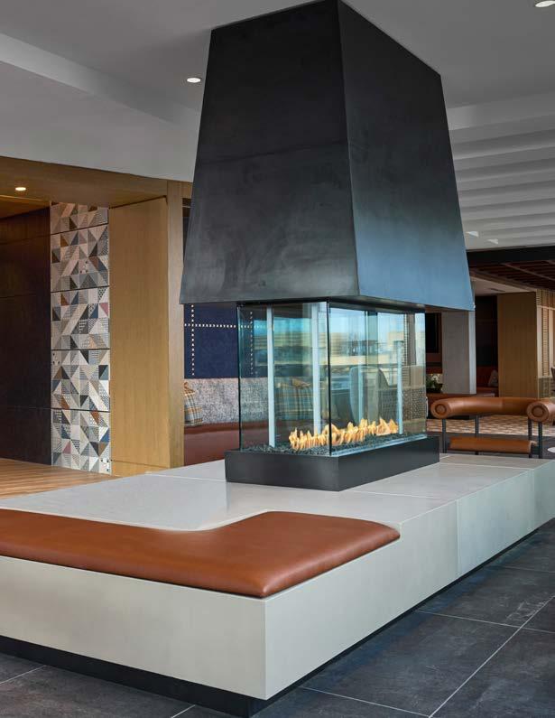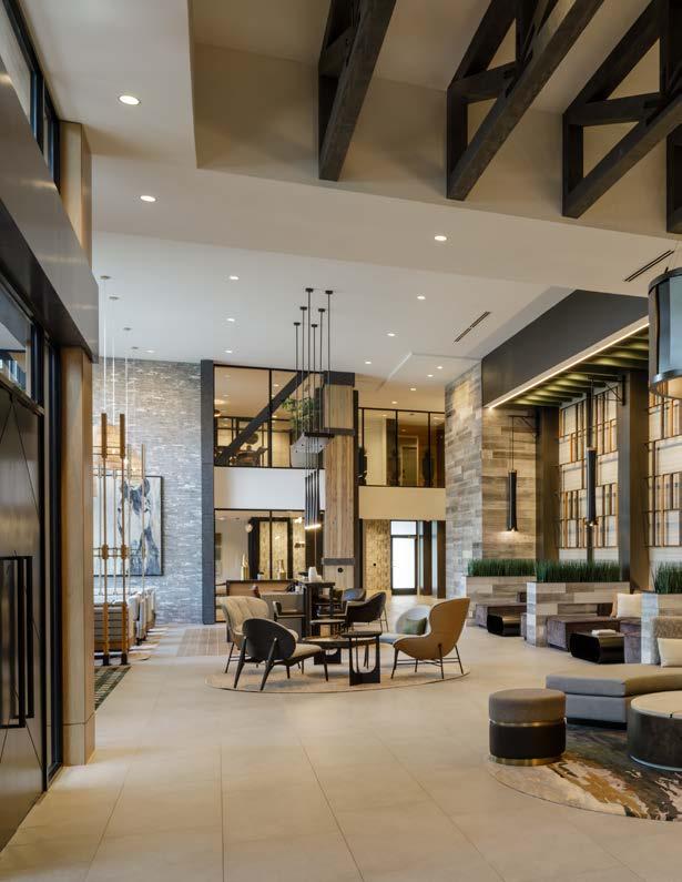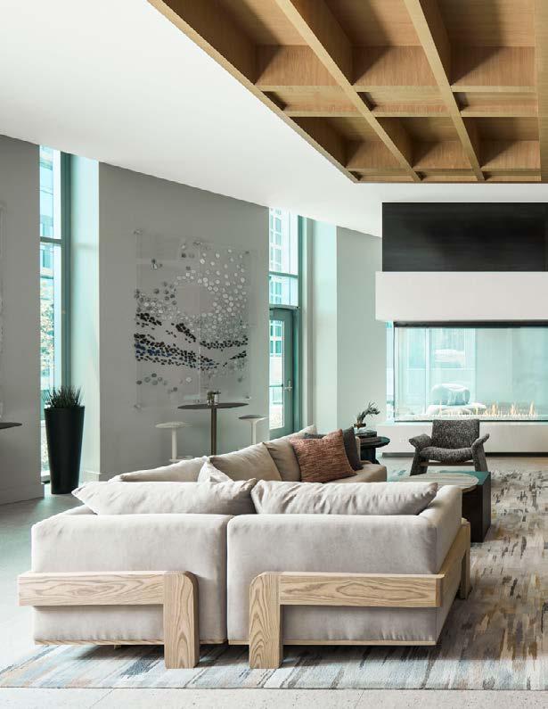 Style: Blending curated comfort with purposeful luxury, offering remote workspaces. The interior design promotes happiness and wellness through light-filled spaces, natural greenery, sustainable finishes, and thoughtful details. A welcoming fireplace and bubbling water feature creates a serene, nature-connected environment that builds community and elevates everyday living.