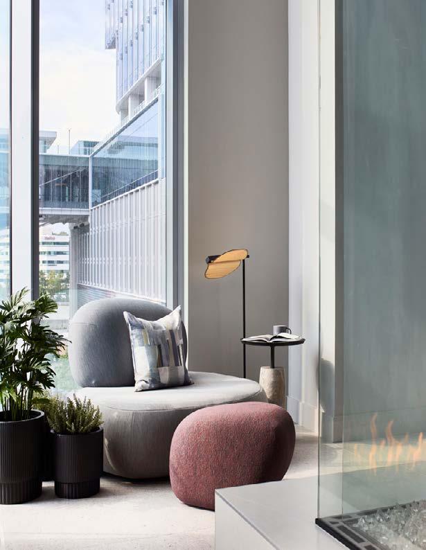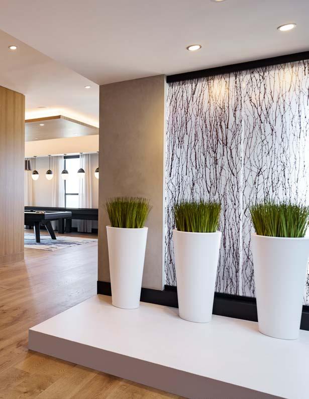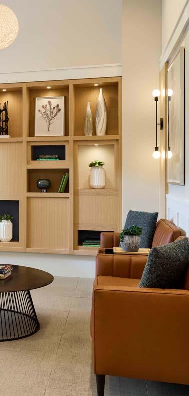 Style: A sophisticated biophilicsimple design with elegance and a retreat-like feel, with a unique, hospitality-driven living experience. Wellness-focused amenities and sleek, modern finishes create a stylish, calming space.