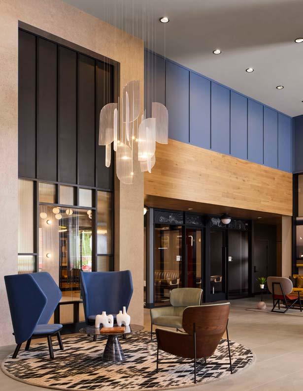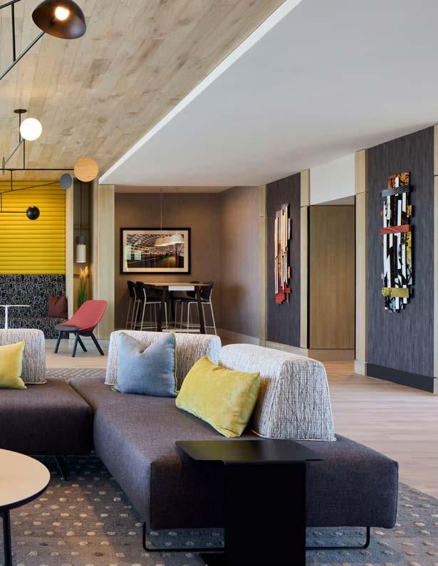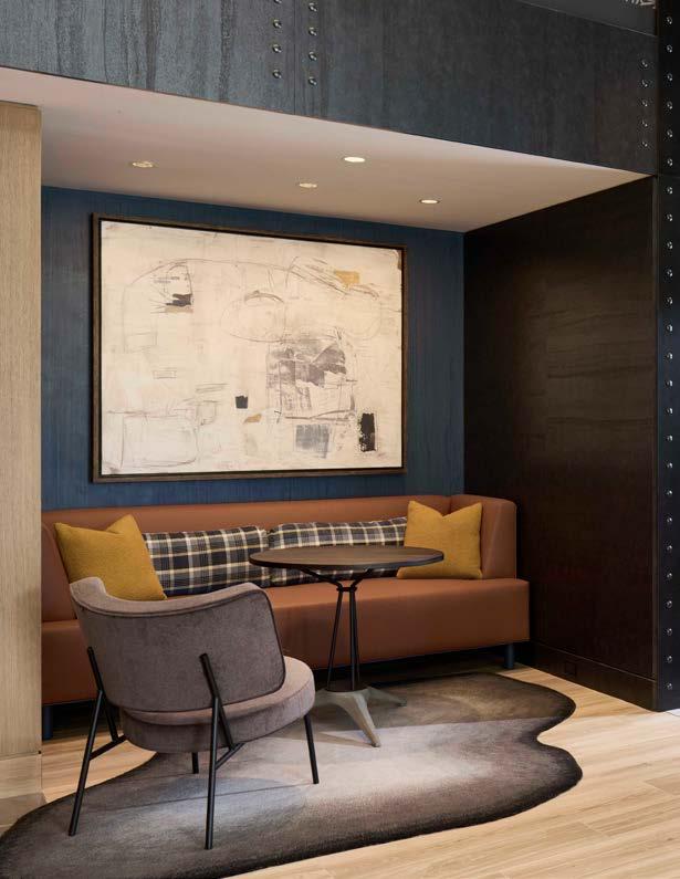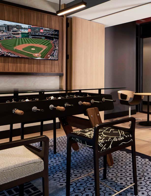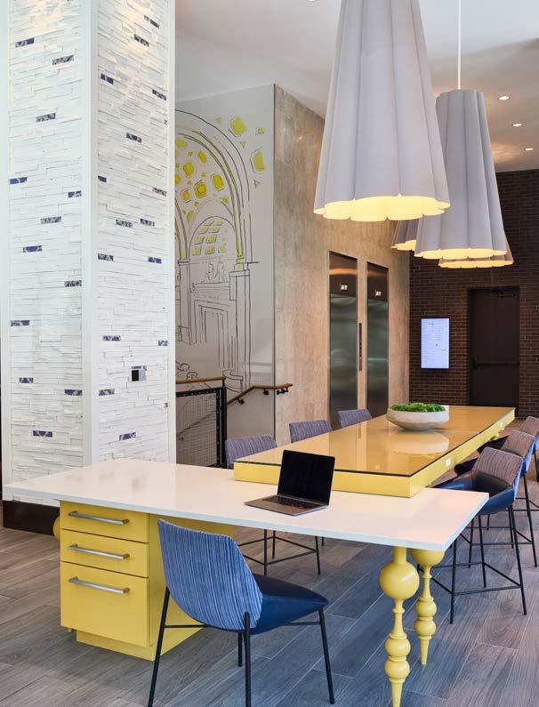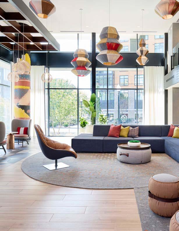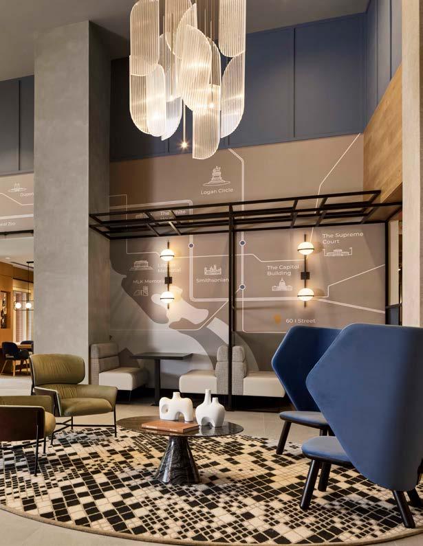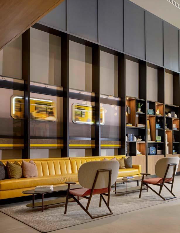 Style: Inspired by the raw energy and street art culture of South New York Avenue, captures the bold, artistic spirit of the NoMa community. Graffitiinspired murals, exposed materials, neon-lit artwork, and grid-patterned lighting fuse the building. Every detail from the dark lobby floor mirroring the pavement outside to custom art installations celebrates the colorful, textured, and expressive identity of its urban surroundings. Project