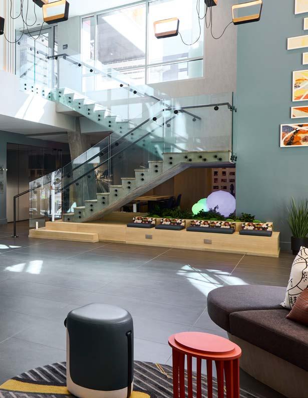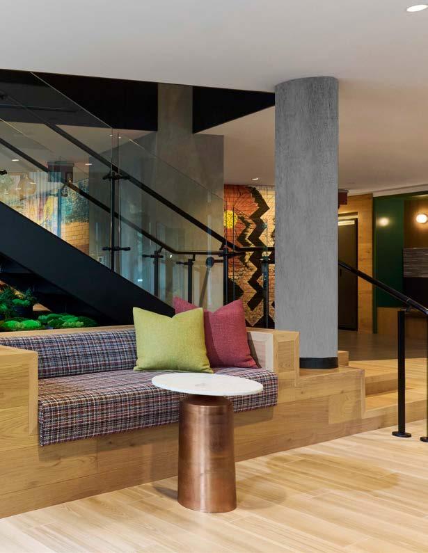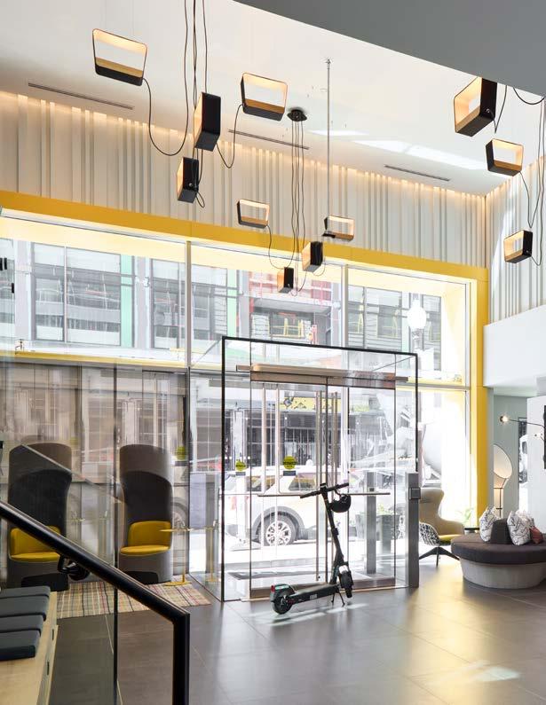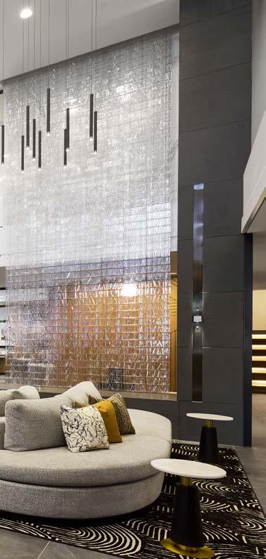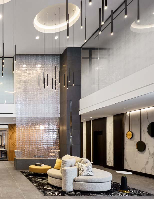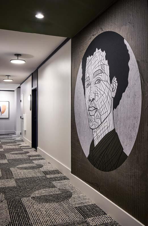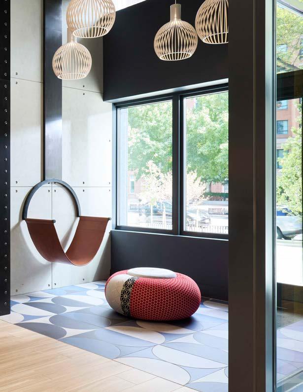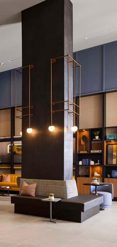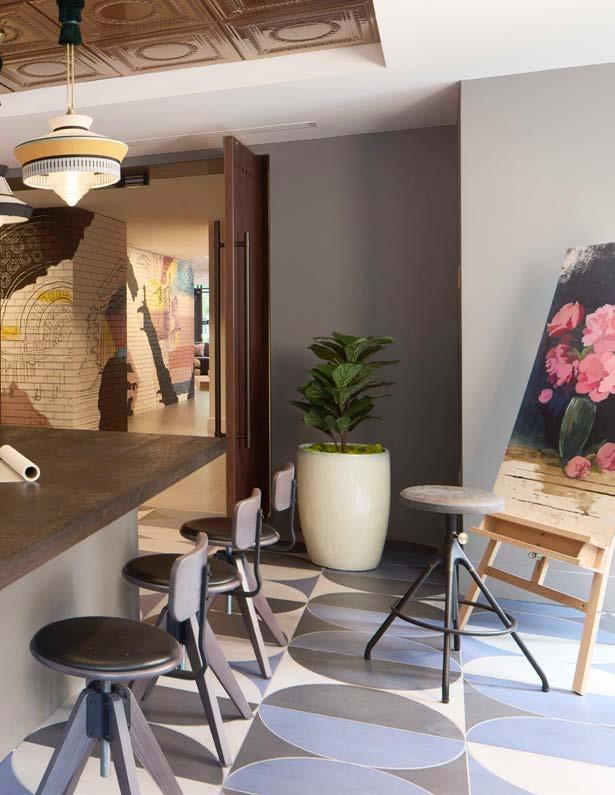 Style: Inspired by the raw energy and street art culture of South New York Avenue, captures the bold, artistic spirit of the NoMa community. Graffitiinspired murals, exposed materials, neon-lit artwork, and grid-patterned lighting fuse the building. Every detail from the dark lobby floor mirroring the pavement outside to custom art installations celebrates the colorful, textured, and expressive identity of its urban surroundings. Project