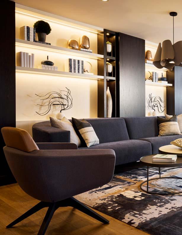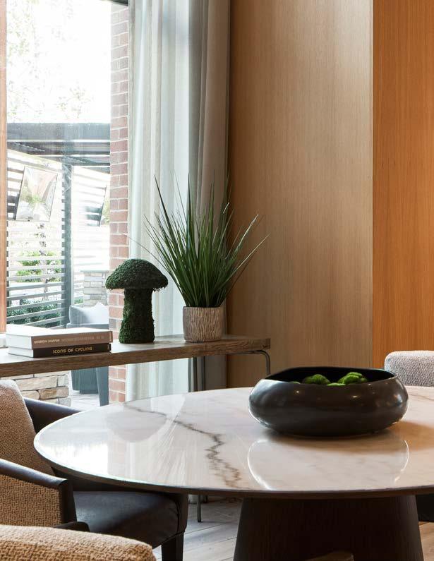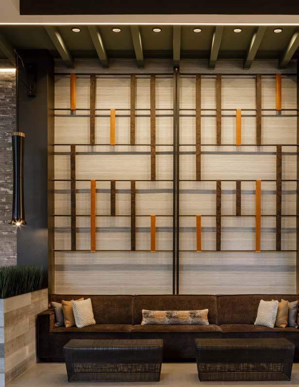 Style: A peaceful sanctuary, connecting residents to nature. Inspired by the owner’s vision of a park-like setting with trails and native landscaping, the interiors reflect a natural theme. A warm, earthy palette of umber, grays, blues, and greens is accented by bronze, black, and copper, and grounded in natural materials like wood, leather, jute, and linen.