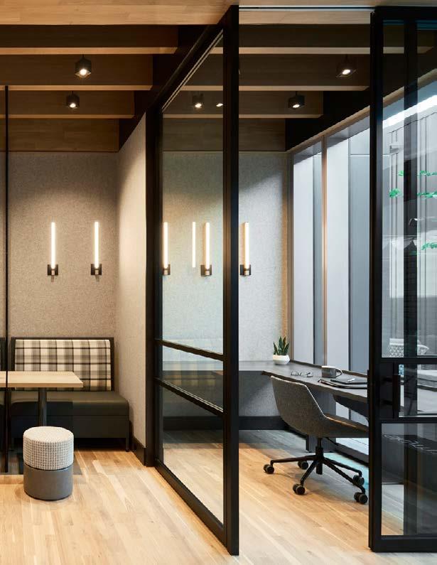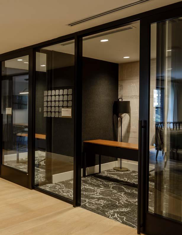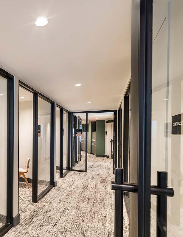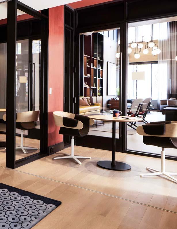 Style: Blends playful vintage charm with sleek contemporary style. A vibrant color palette, anchored by black, white, and warm wood tones, is brought to life with standout touches like lockable subway doors. Full-height glass, soaring ceilings, and views of the courtyard create a bright, airy space that connects effortlessly to both the city and nature.