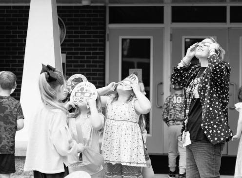 PHOTOSBYRACHELHOWARD SecondgradestudentsatF.E.BurlesonElementarySchoolwatchedthesolareclipseMondayfromtheschool playgorund.Wearingtheirsolarglassesforsafety,thestudentswitnessedtheeventwillnotoccuragainin thecontiguousUnitedStatesuntil2044–whenthesestudentsarenearly30yearsold.Seemorephotoson page8andonlineathartselleenquirer.com.