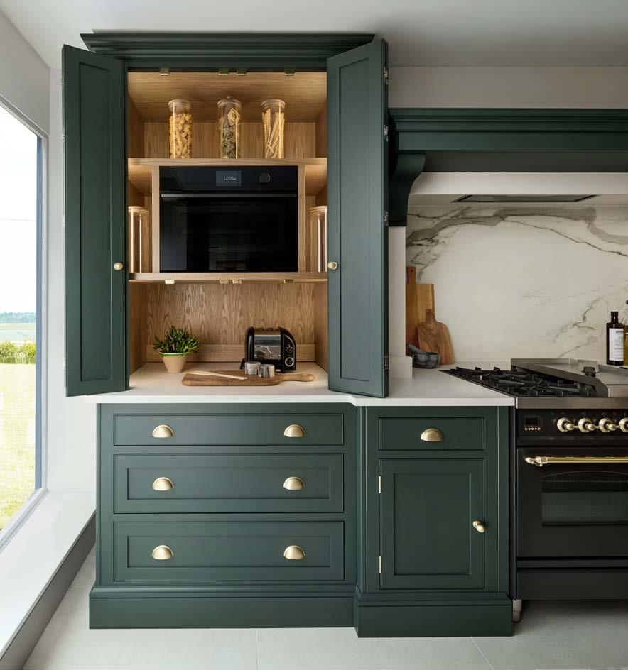 Hand-painted in a heritage-inspired Racing Green, our classic Shaker cabinetry catches the eye with personality and timeless charm.