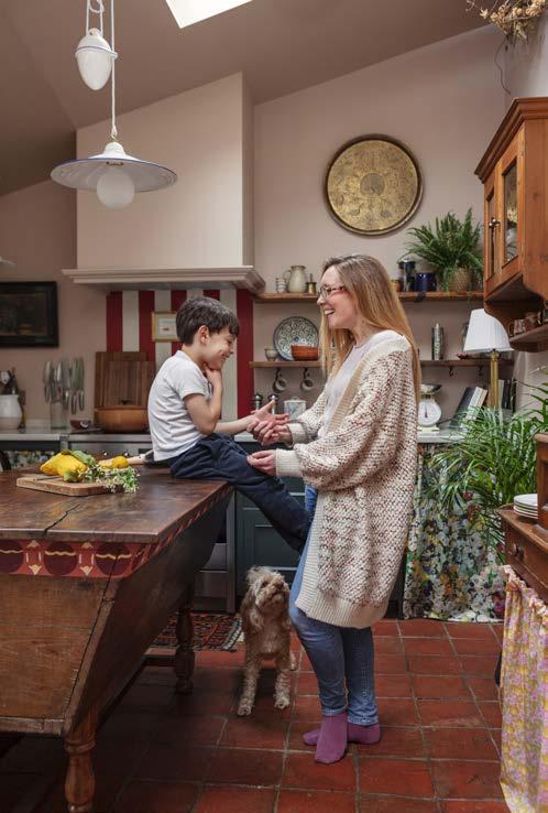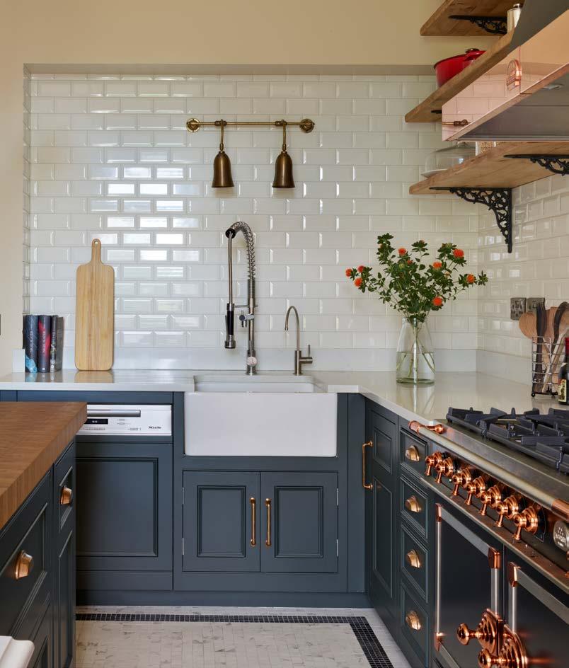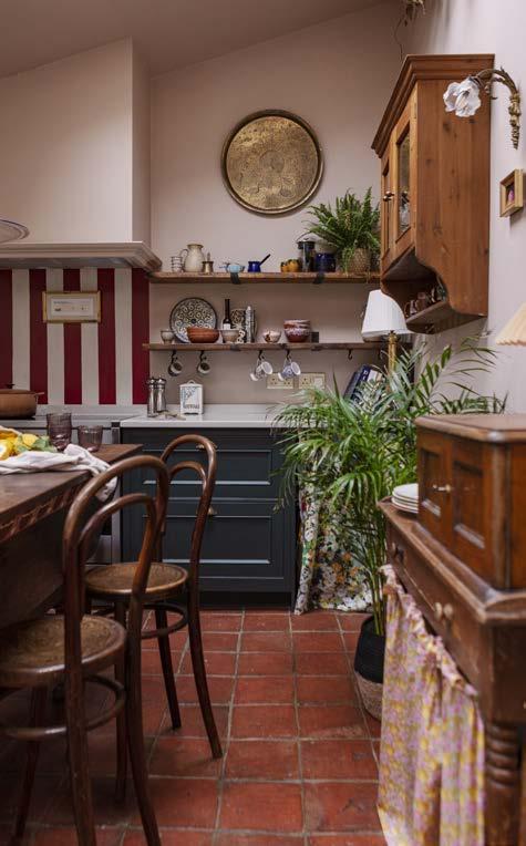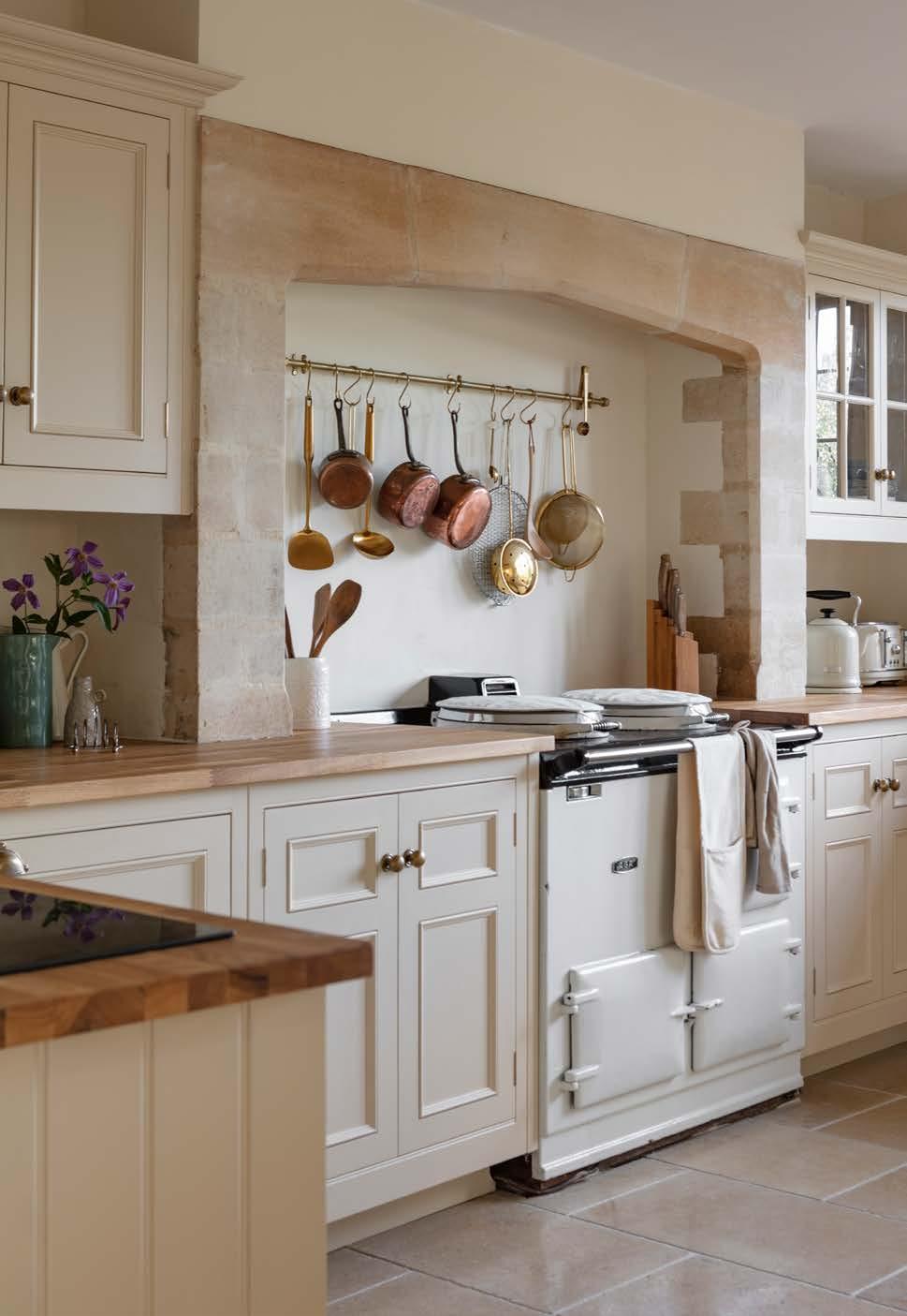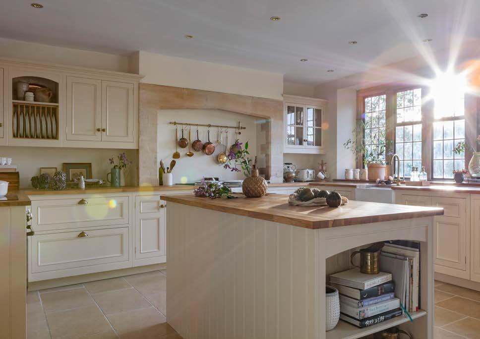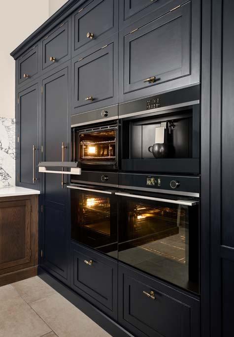This invitingly rich palette chimes perfectly with the warming hues of raw, aged-look terracotta tiles. Meanwhile, an ornate extractor hood creates a striking statement piece, tying into the period aesthetic whilst cleverly concealing contemporary appliances. How it works