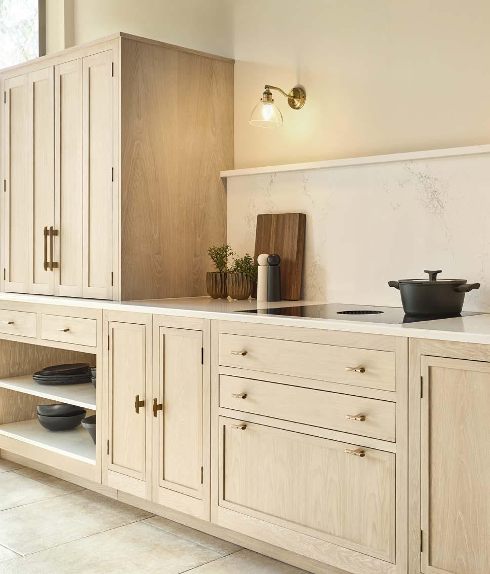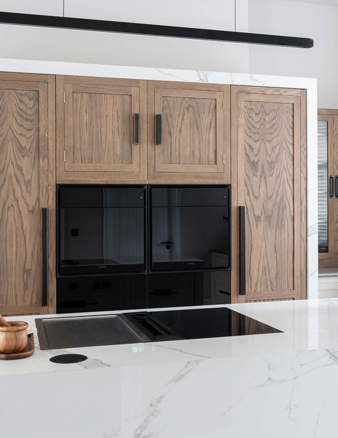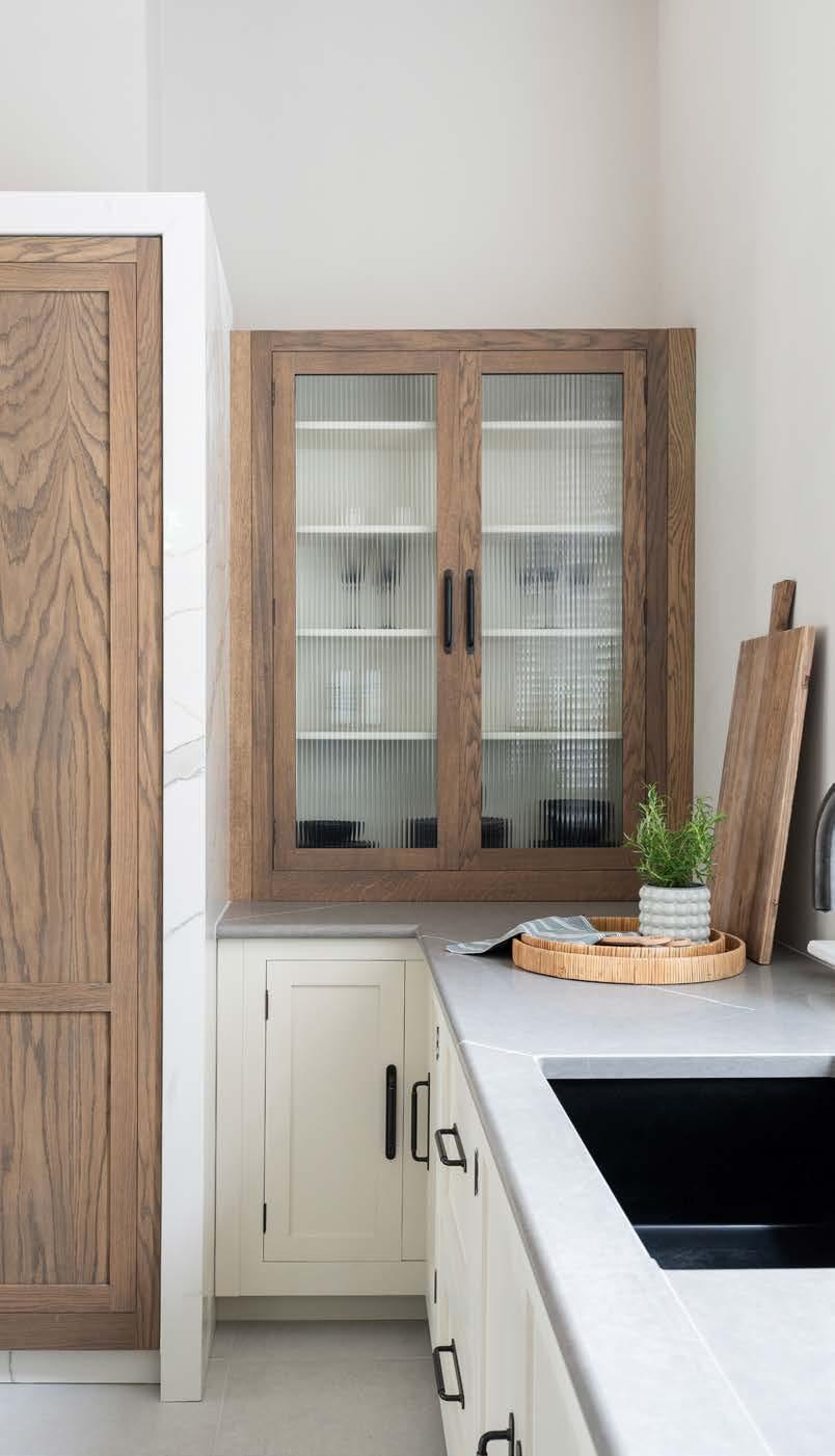 Prefer a more natural look? Our selection of refined oak stains adds warmth and texture, making them ideal for layering with brushed brass, fluted glass, or honed quartz surfaces. Each element is chosen not just for how it looks, but for how it complements your cabinetry, your palette and your life.