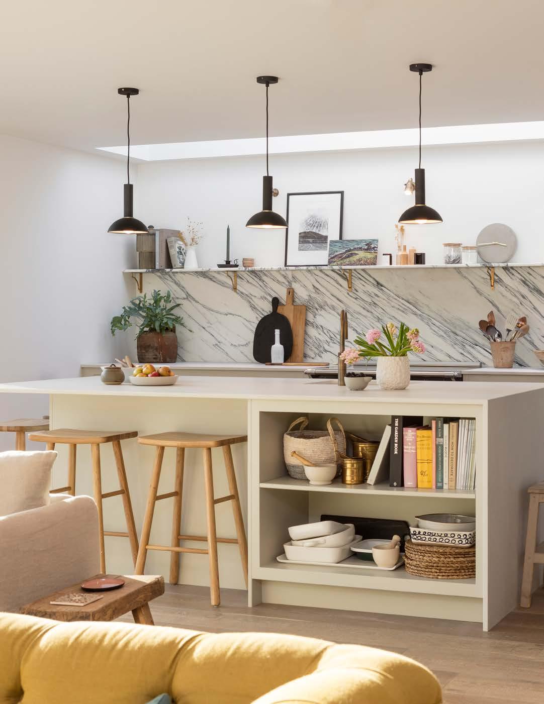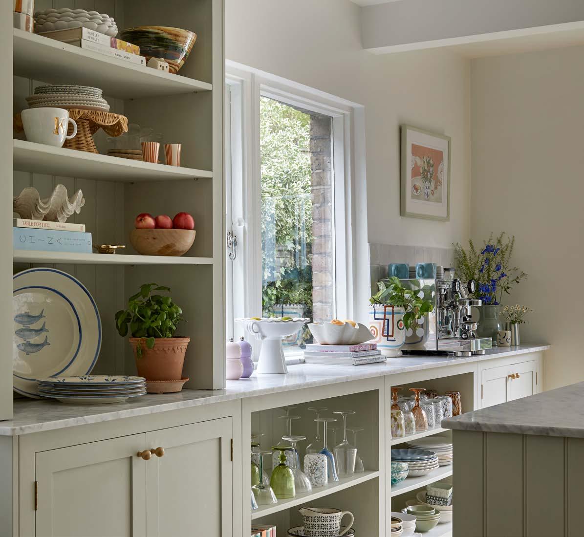 Kate’s layered, lived-in style is reflected throughout, from tonal accessories and artwork to the thoughtful balance of open and closed storage. Every detail feels curated with care, turning the kitchen into more than a cooking space - it’s a creative, multifunctional hub made for modern family living.