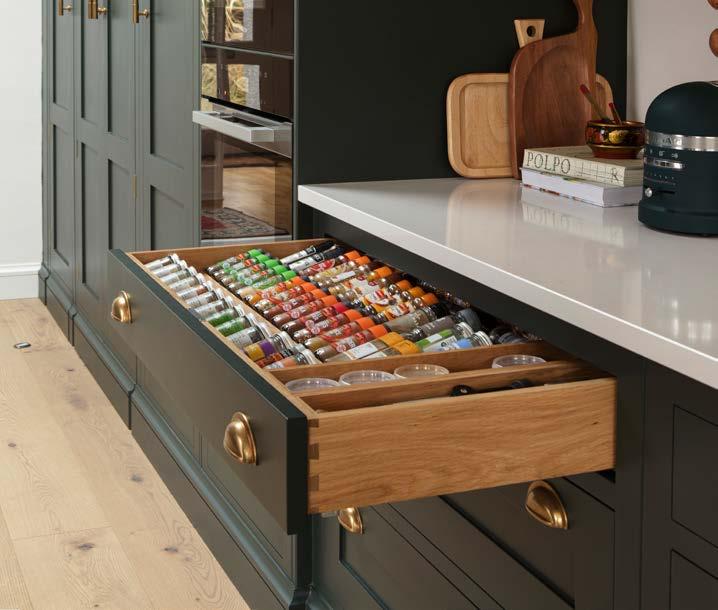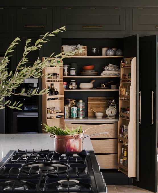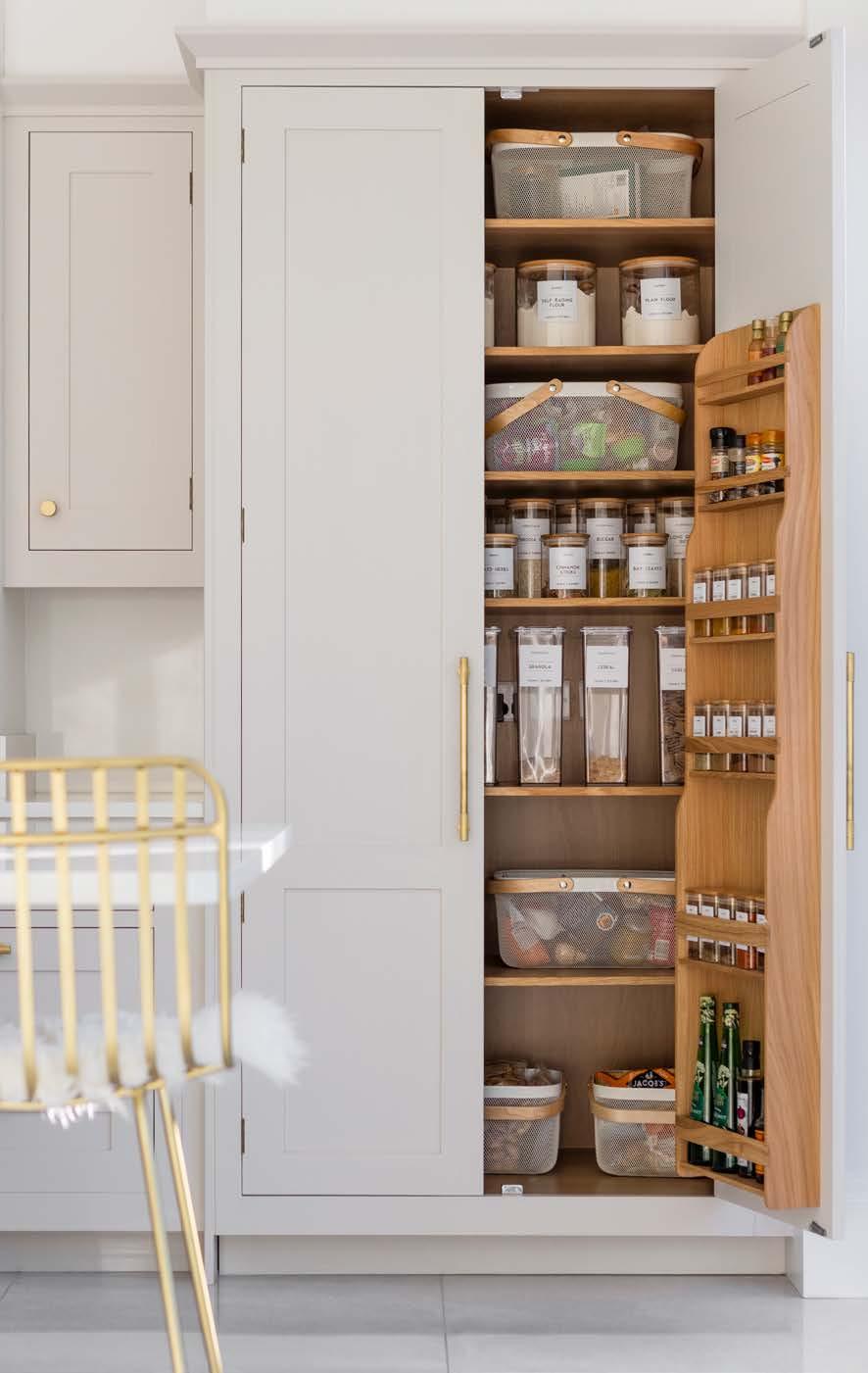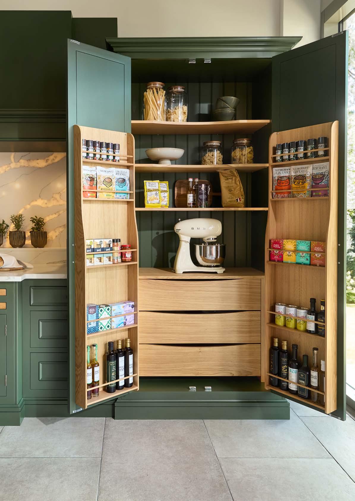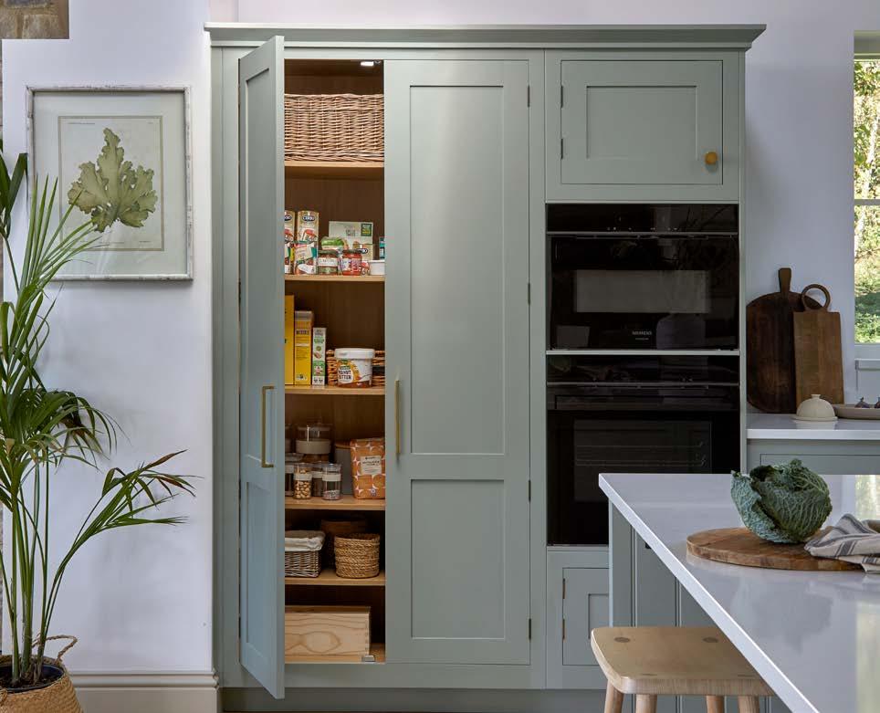 Our talented designers delight in coming up with ingenious ways to incorporate tailor-made pantries, whether it’s a secret door hidden within the main kitchen cabinetry or cleverly housed within one of our hand-painted cupboards. From freestanding larders and pull-out cabinets to attractive spice racks, cookware nooks, dry
