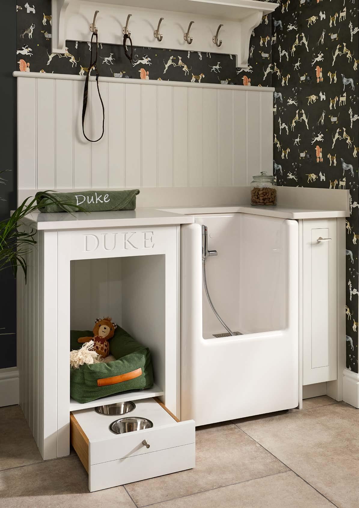 Our lovingly dubbed ‘pet kitchens’ can be curated with all manner of thoughtful spaces just for furry family members. Think built-in showers or roomy sinks, placed at just the right height for washing muddy paws post-walkies (with a rack for dog-drying towels placed strategically nearby). Or a corner for a cosy bed, so your pet can keep you company while you make dinner. Perhaps a cabinet with integrated feeding and water bowls, which can be tucked away with ease after use.