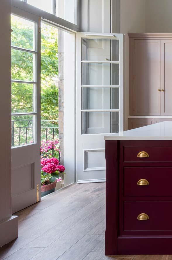 As the owner of a stunning four-storey Georgian property in Edinburgh, our client came to us to design a kitchen that would complement the period features of their family home. Their local Harvey Jones designer rose to the challenge, assembling a transitional-styled kitchen showcasing timeless characteristics, anchored by a bold, burgundy-hued island.