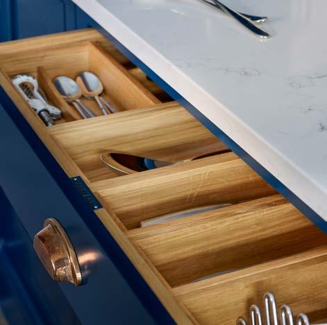Available in a range of high-end materials, including the finest oak and walnut timbers, consider our clever drawer inserts to keep cutlery and kitchen essentials in place within your cabinetry.
