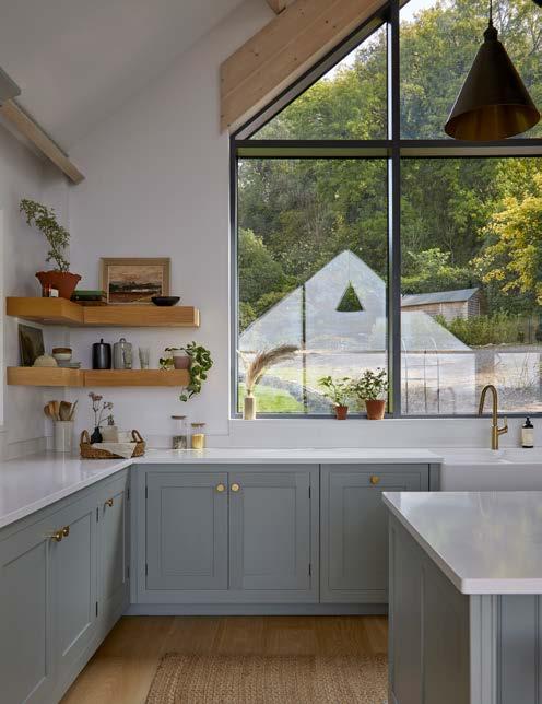 For this busy family in Bath, the kitchen needed to be more than beautiful; it had to work effortlessly for everyday life while complementing the clean architectural lines of their hillside home. With vaulted ceilings and panoramic A-frame windows offering views of both the garden and cityscape beyond, the brief was clear: preserve openness, maximise light, and create a calming, multifunctional space for family and entertaining.