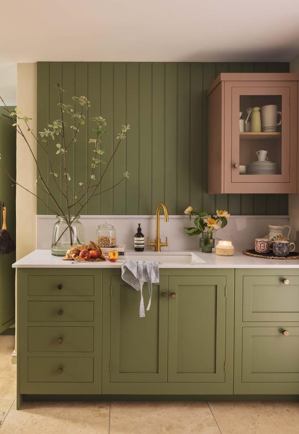 Hand-painted in a gentle green, the cabinetry sets a soothing tone while allowing the