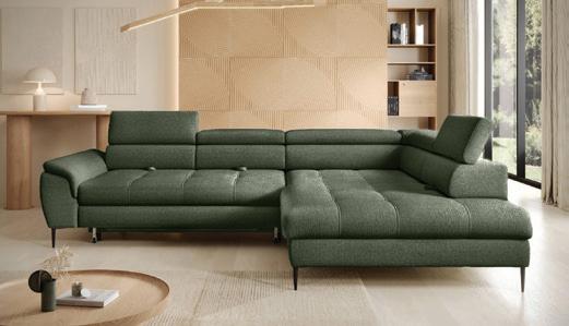 4.599 € Kutna garnitura EMPOLI, 289x218 cm, ležaj 140x220 cm, 1x spremnik, 5x pomični glavonasloni, cijena vrijedi za tkaninu I. kategorije Crown 18 (tamno siva), 1 (prljavo bijela) i 12 (maslinasta, po narudžbi).