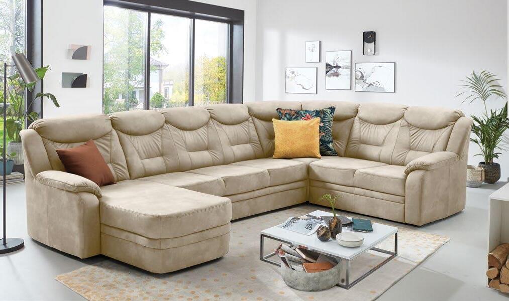 Kotna sedežna ALBA XXL, vzmeteno 160x333x218cm, leva ali desna postavitev, ležišče, predal, material kategorija C ANAYA 9611 bež