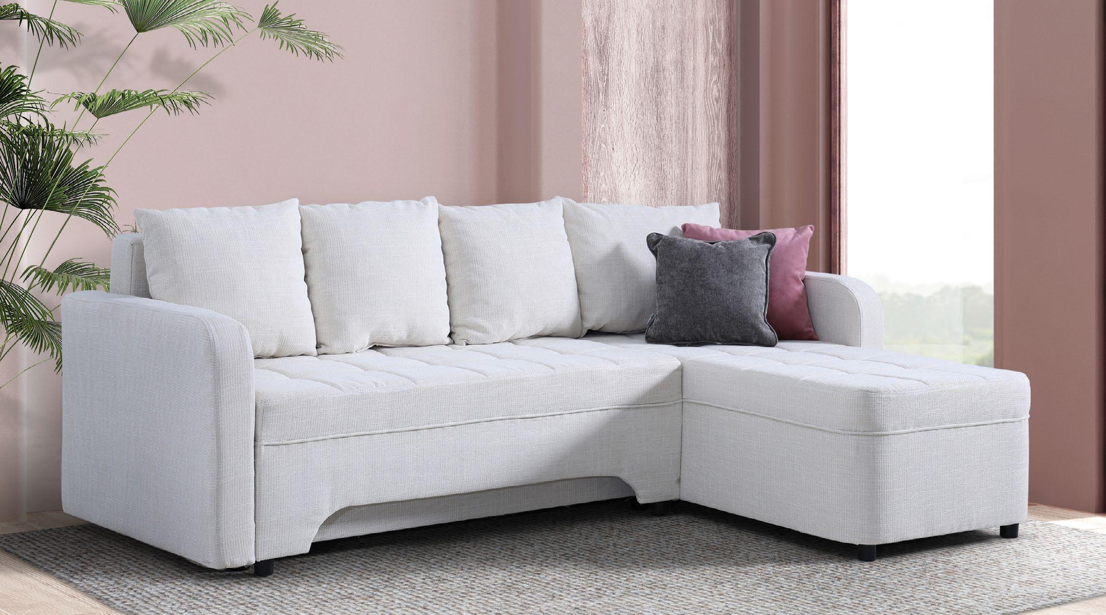Kotna sedežna garnitura HANA RN, 220x155cm, leva ali desna postavitev, ležišče 130x200cm, predal, blago LINEA 100 bež. Odprodaja zaloge! & PREDAL LEŽIŠČE